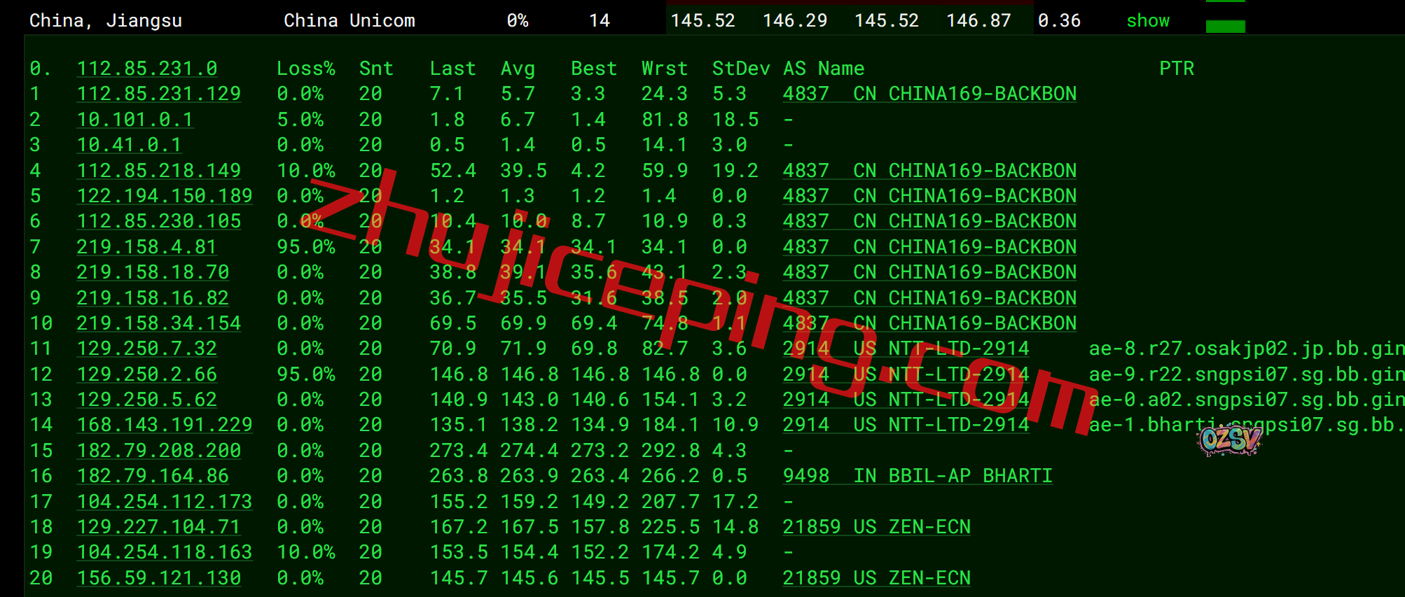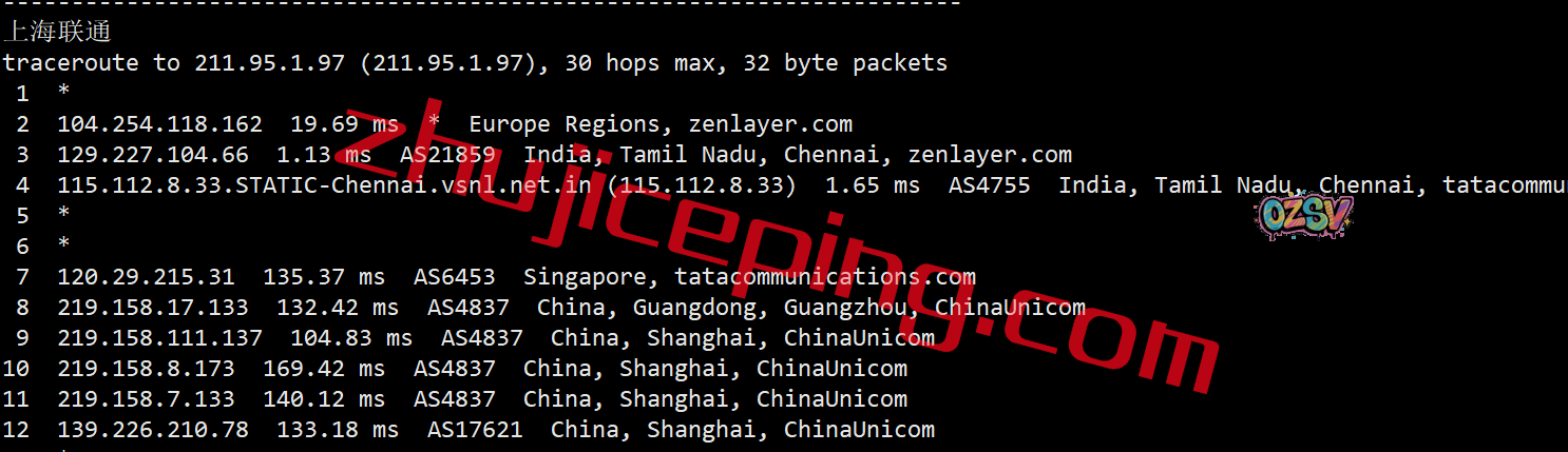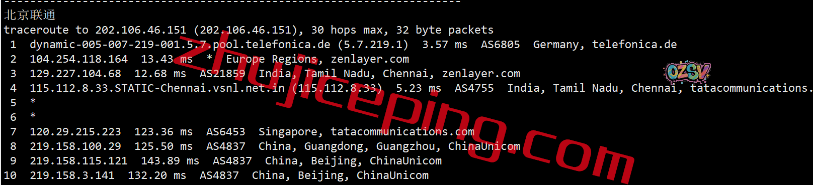 北京、上海:从印度走tata到新加坡tata然后对接联通AS4837骨干