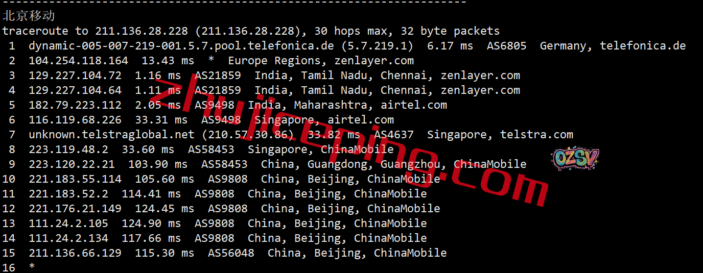 北京方向:走airtel到新加坡转Telstra再转移动新加坡节点,然后直连回国