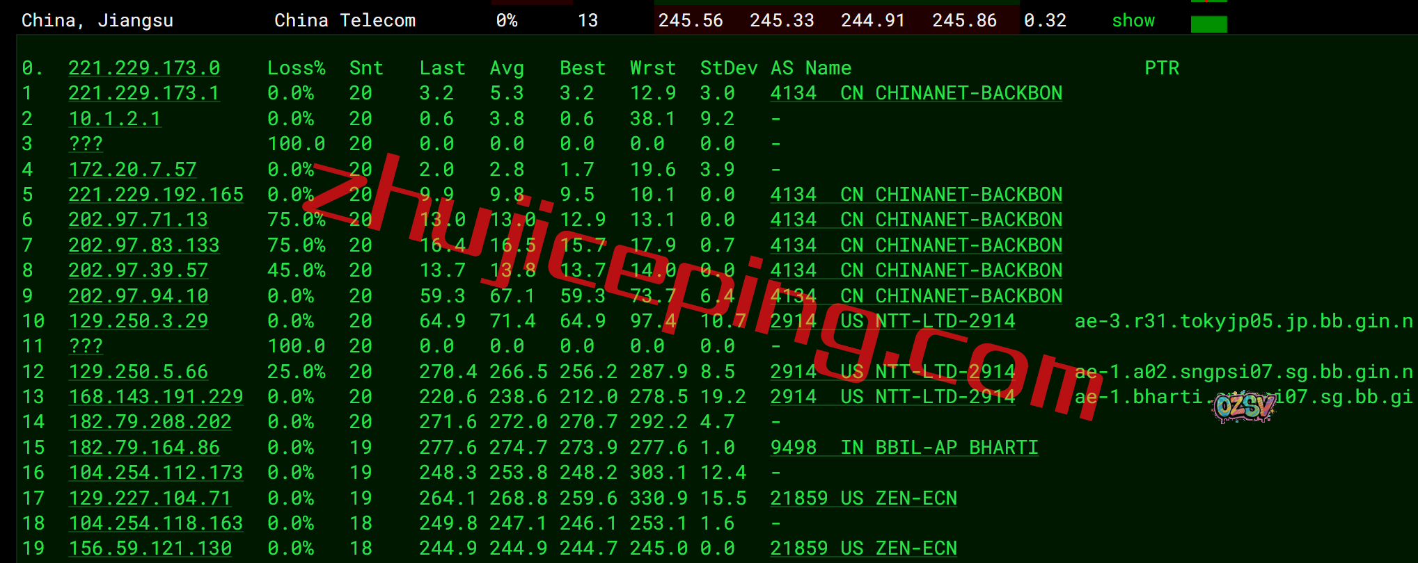 电信去程,走NTT,先绕了一下日本,然后去新加坡,再去印度: