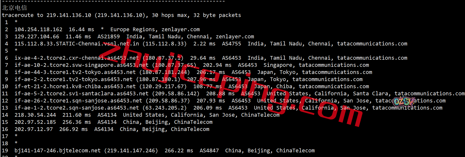 网络这块儿,电信回程全部绕道了美国,联通和移动基本上都是遵循从印度、新加坡、香港、内地这样一个走法。到目前为止,印度VPS来国内中国电信真的是没有见过一个好点儿的路由。