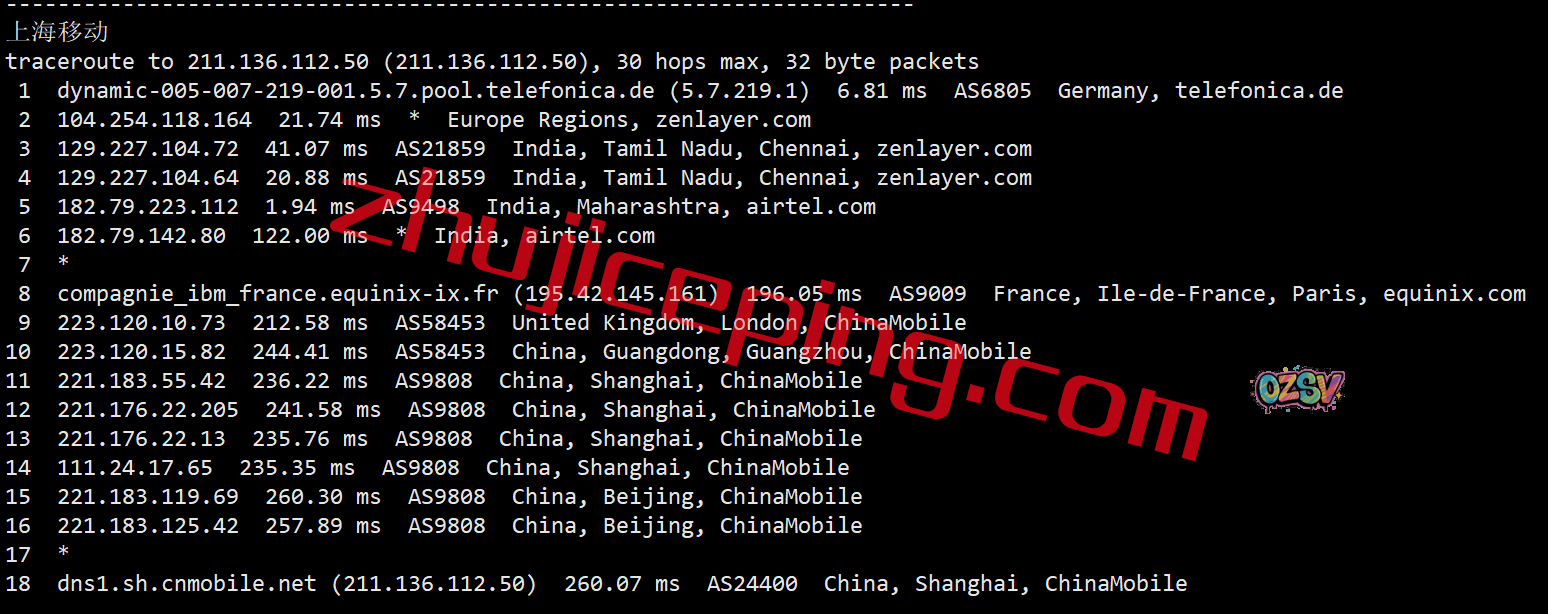 上海方向:走airtel到欧洲,从移动英国节点直连回国