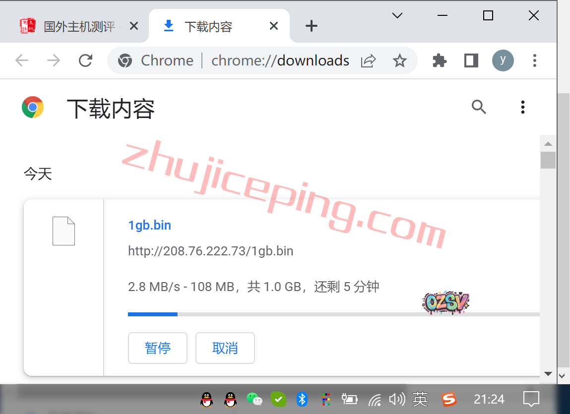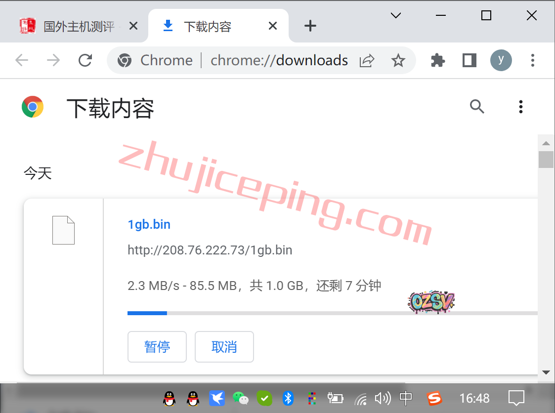 存放在测试小鸡上面的文件,广州电信直接用浏览器下载,看看速度: