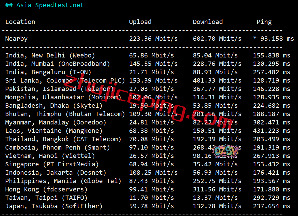 我们再来跑一下亚洲区域内的其他节点,看看对应的网络情况: