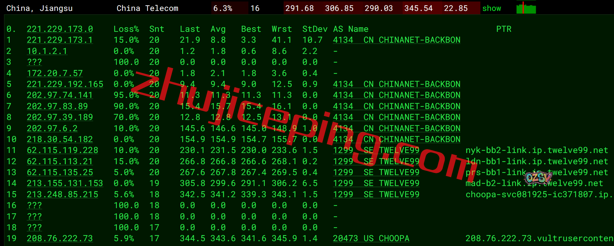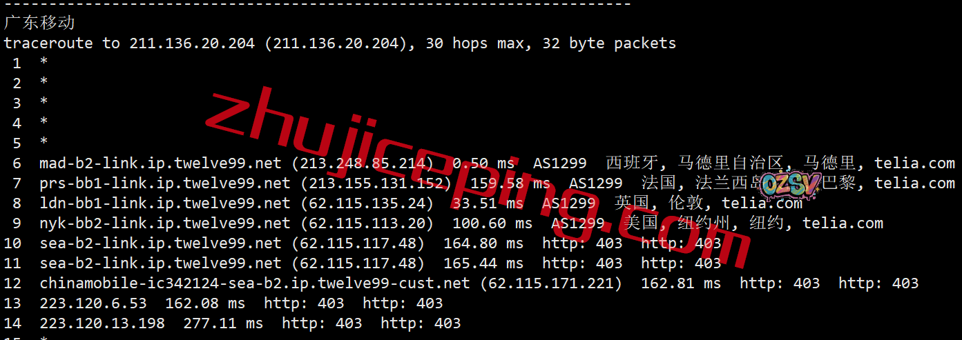 广州方向:走telia到美国西雅图,然后转中国移动在西雅图telia的节点,直连回来