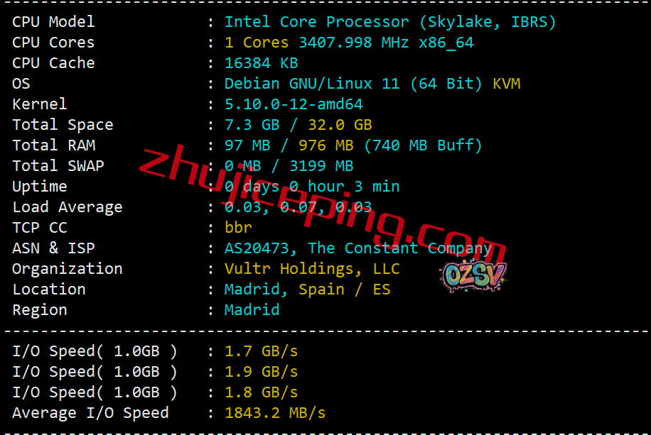 vultr在西班牙马德里有自己的数据中心,提供西班牙云服务器,当前还有AMD系列,支持10Gbps带宽,在网络、性能等上面面相欧洲业务有一定的优势。vultr怎么样?vultr西班牙怎么样?本次主机测评给大家分享下西班牙云服务器的测评数据,仅供参考!