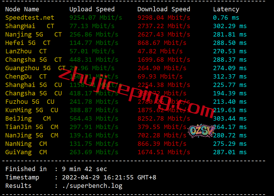 speedtest.net的不同节点跑一下,看看上下行带宽能跑多少吧?!