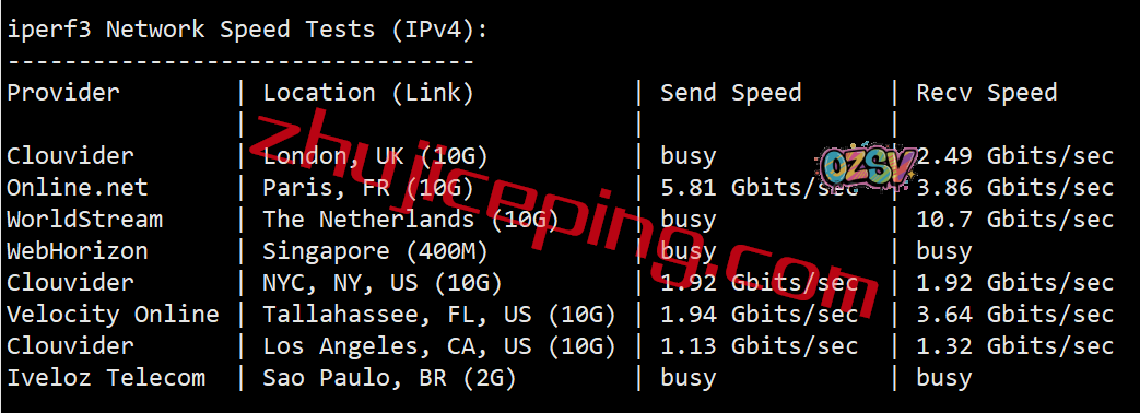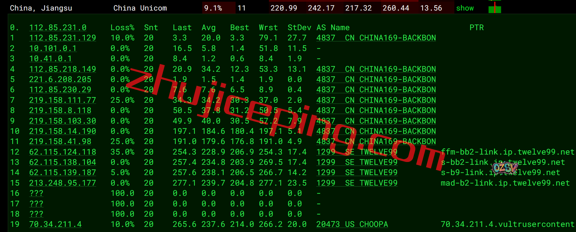 网络回程,电信和移动都是从欧洲到美国,横穿美国到西海岸的节点直连回来,联通走的全是国际线路,略差点。网络整体来说对国内用户来看不算理想!