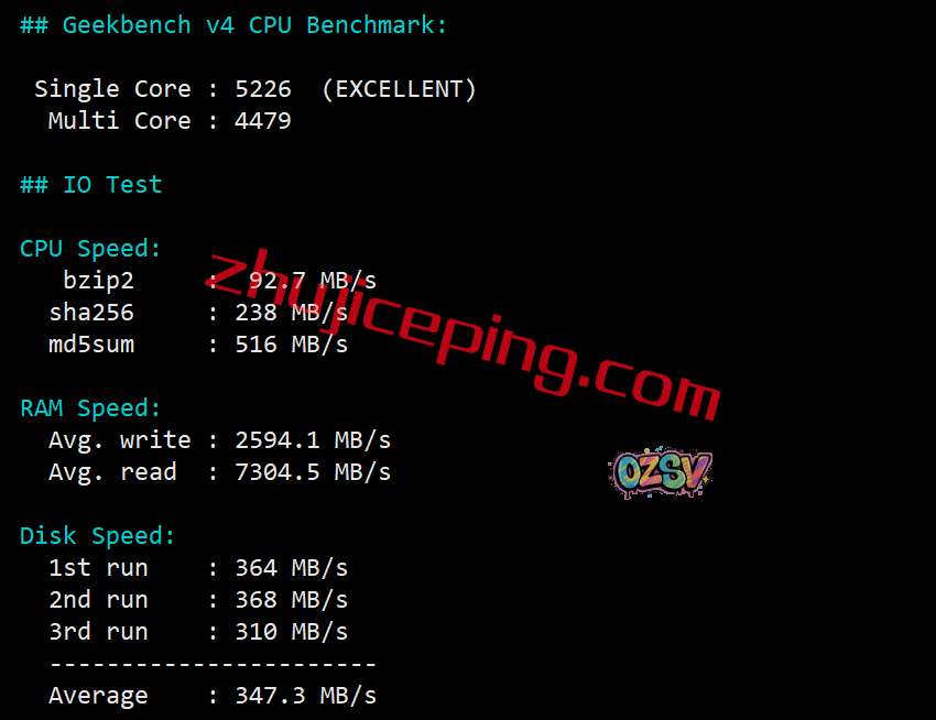 根据官方的说法之后推测CPU应该是AMD EPYC™ 7702 、7702P、7662这三款里面的一种。主频2GHz,站长开启了BBR,VULTR的IP为其母公司AS下的广播IP,当前硬盘I/O大致293MB/S。