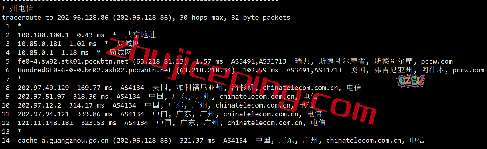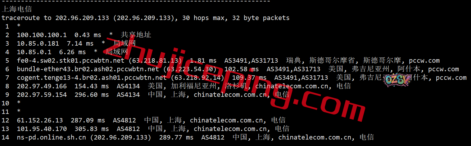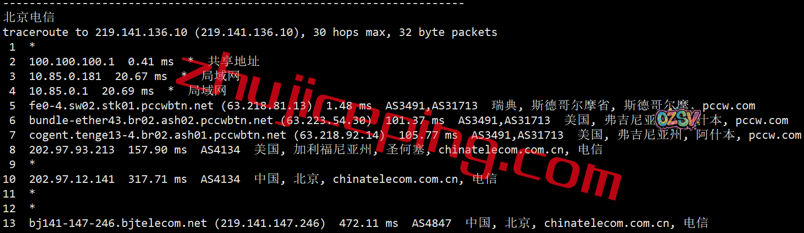 回程,到国内电信:从欧洲走PCCW直接到美国东海岸,然后到西海岸,然后走电信在西海岸圣何塞或者洛杉矶的节点直连回来