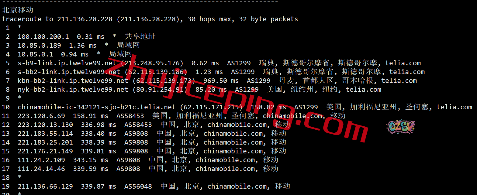 走telia到美国东海岸,然后到西海岸,走移动在美国西海岸的节点直连回来