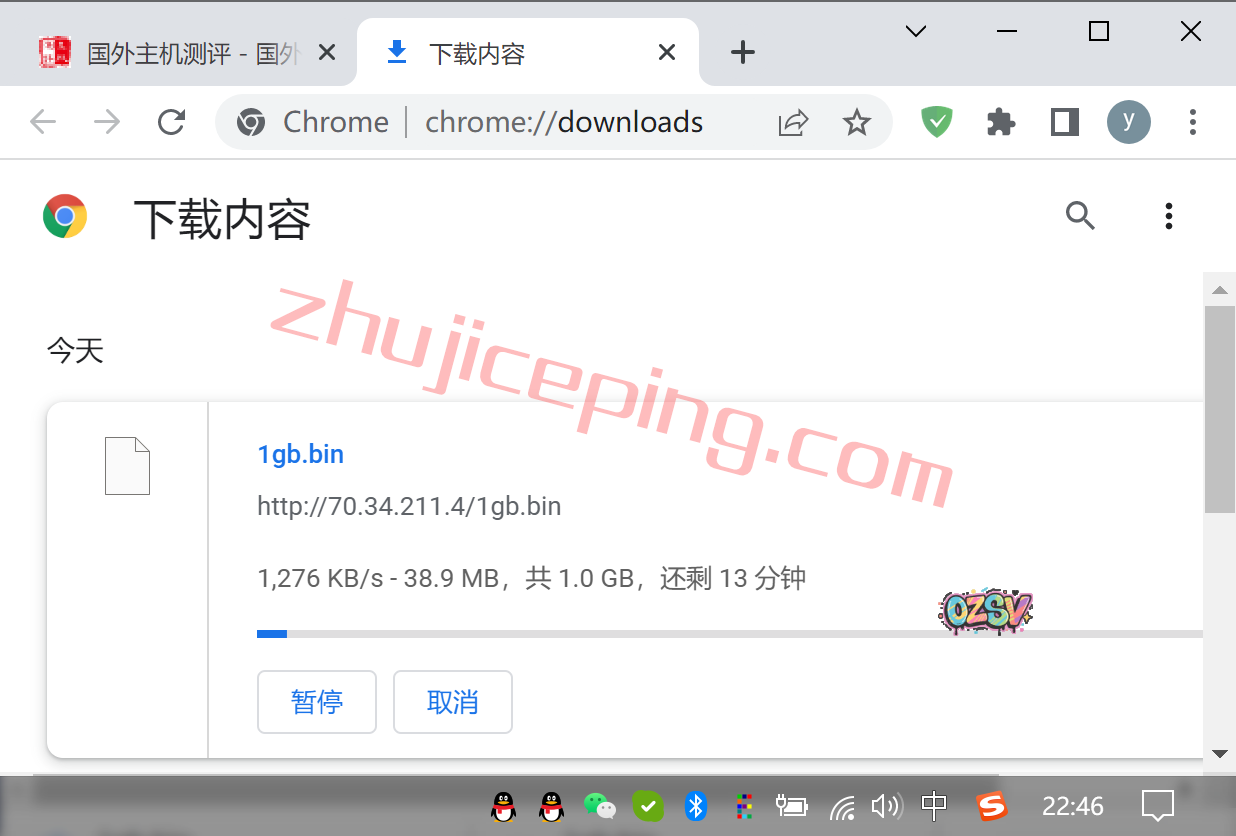存放在测试小鸡上面的文件,广州电信,直接用Chrome下载,看看速度吧: