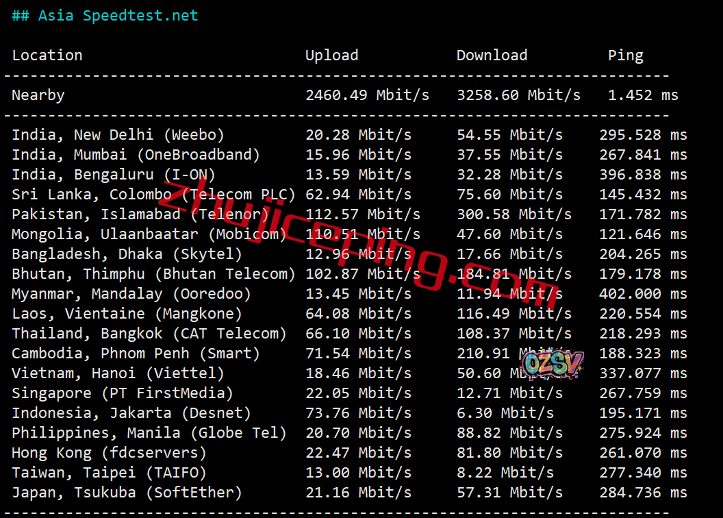 继续speedtest跑一下亚洲区域内的节点,大致结果: