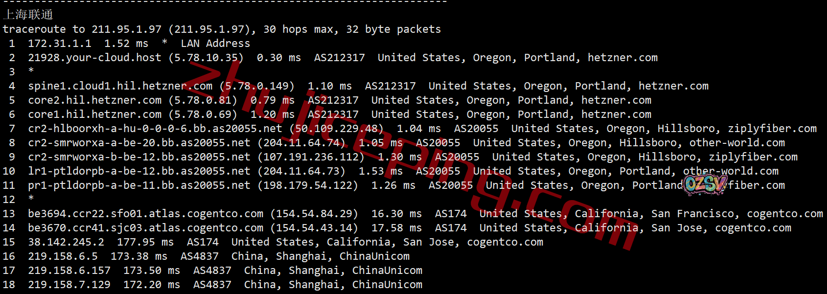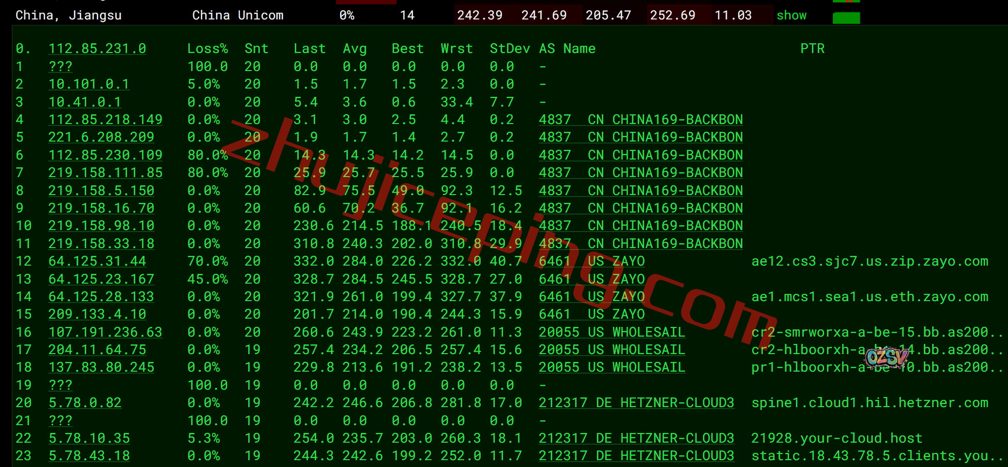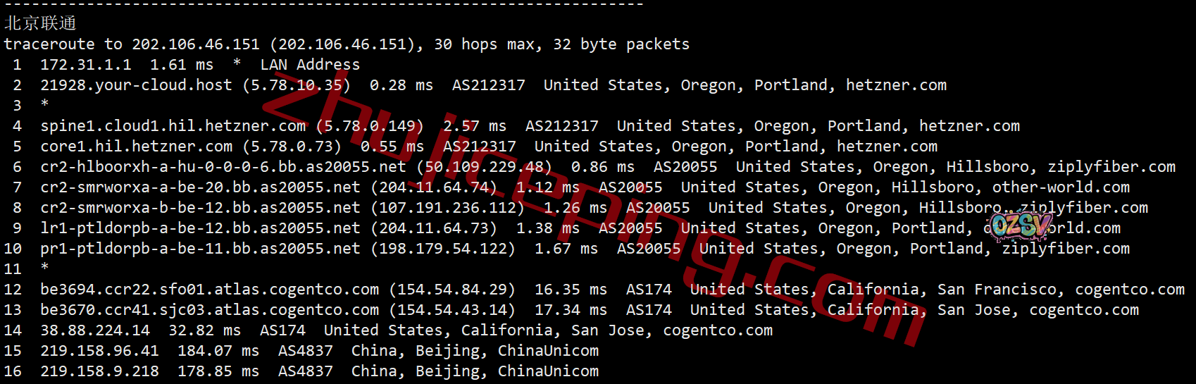 联通去程,联通骨干对接zayo: