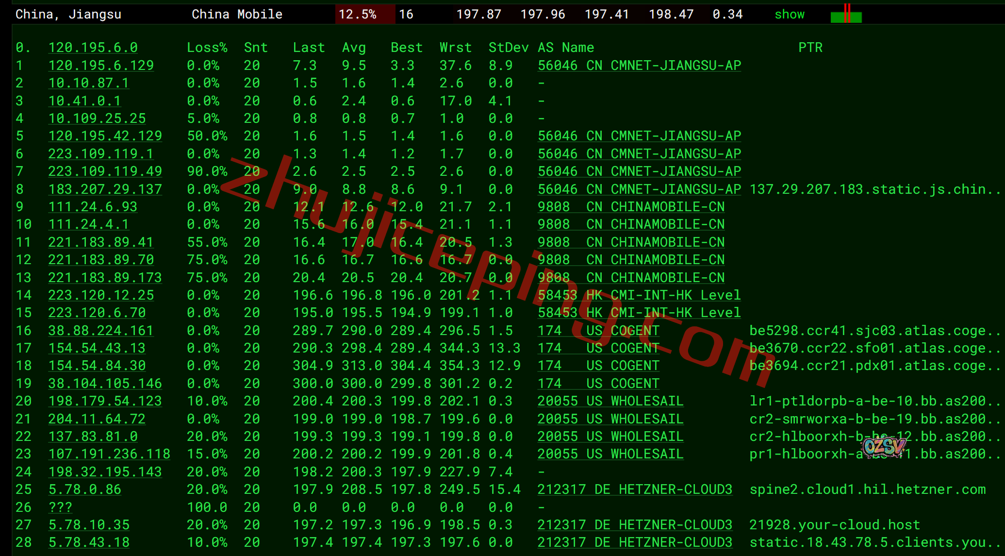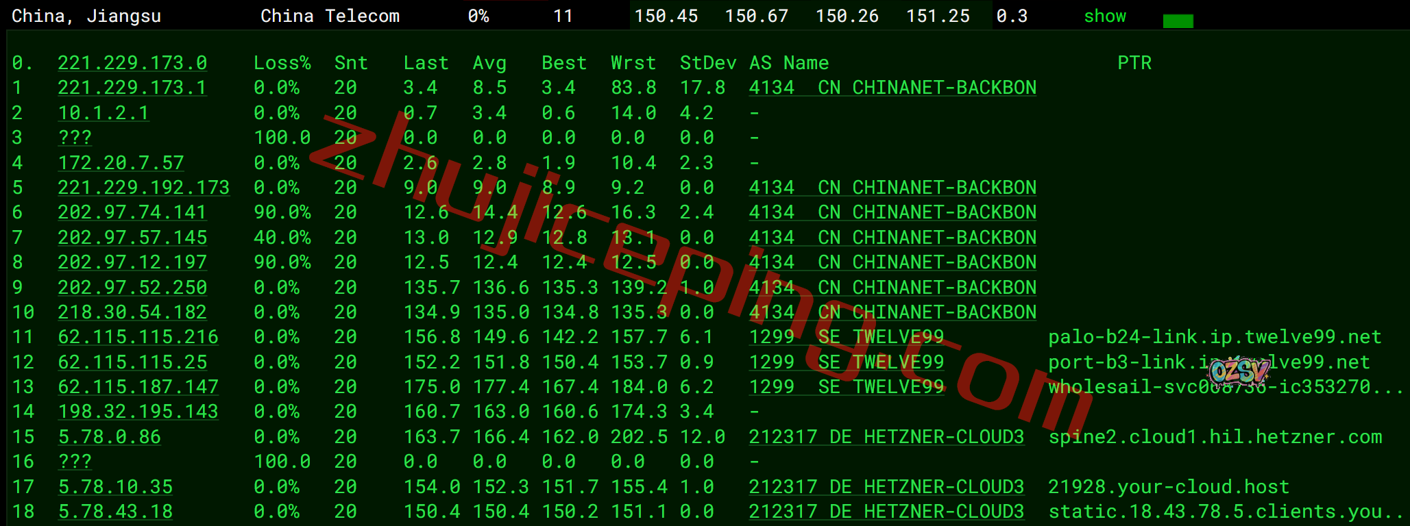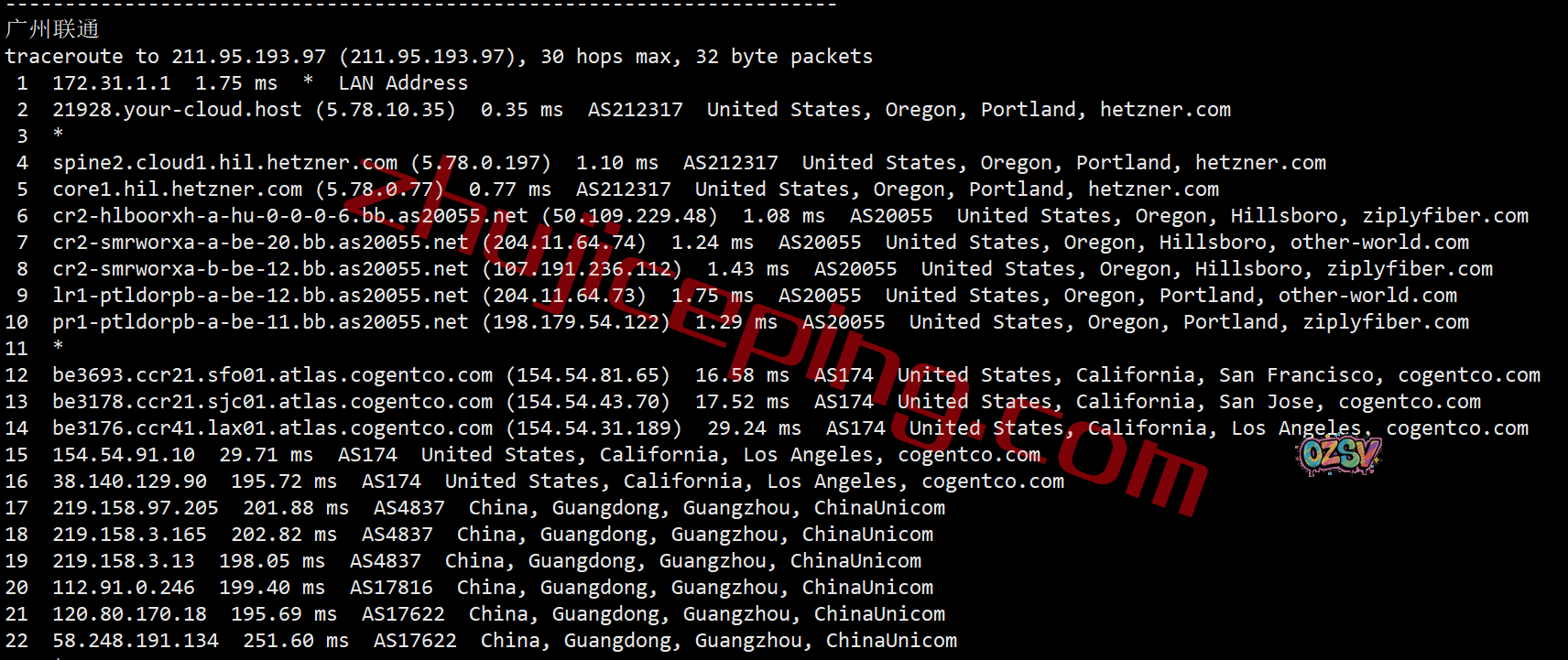联通去程,联通骨干对接zayo: