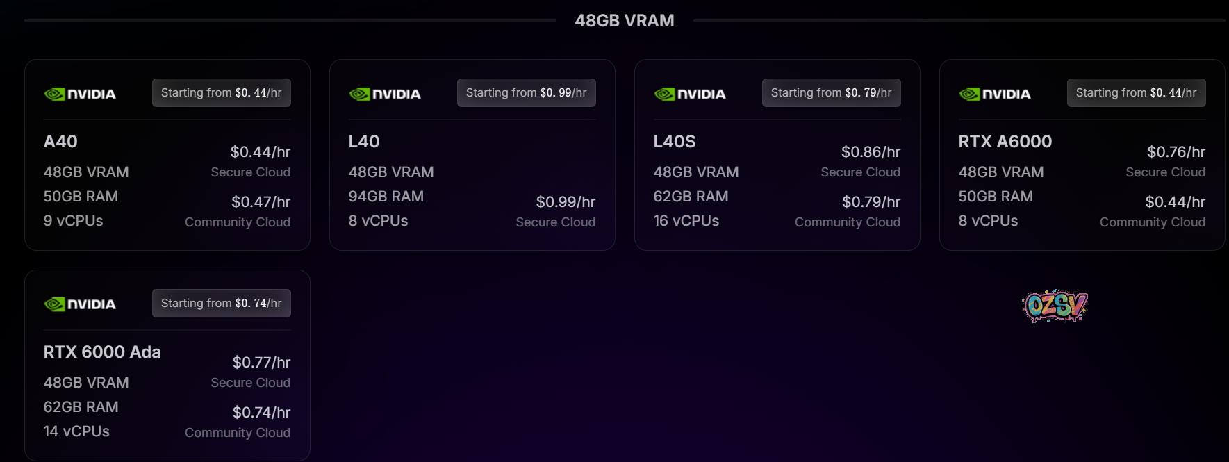 Nvidia L40 Ada Lovelace 48GB $1.14 → $0.99