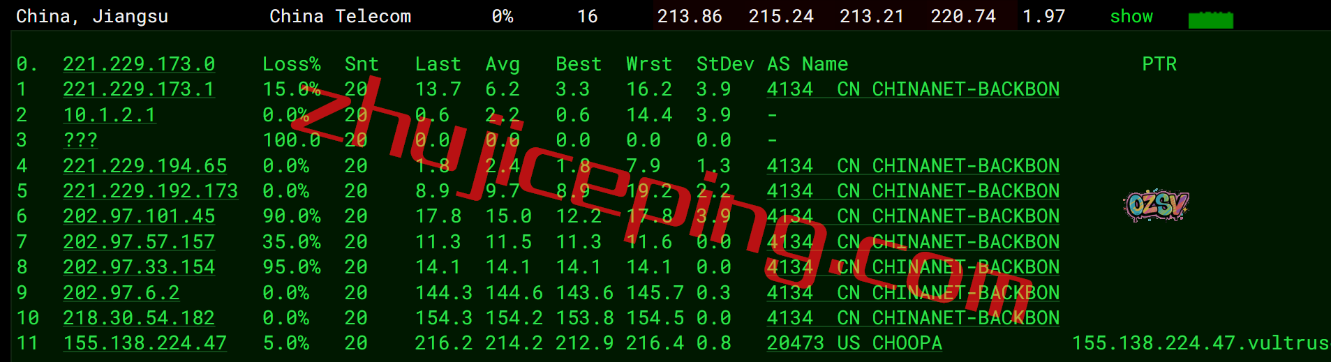 同样的测试,我们换晚高峰骨干网阻塞时间段来看看效果: