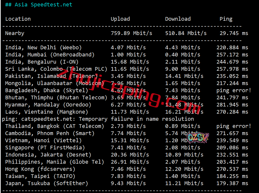 跑一下亚洲境内的多个节点,看看数据大致情况: