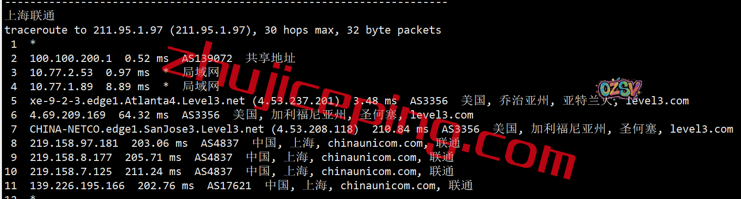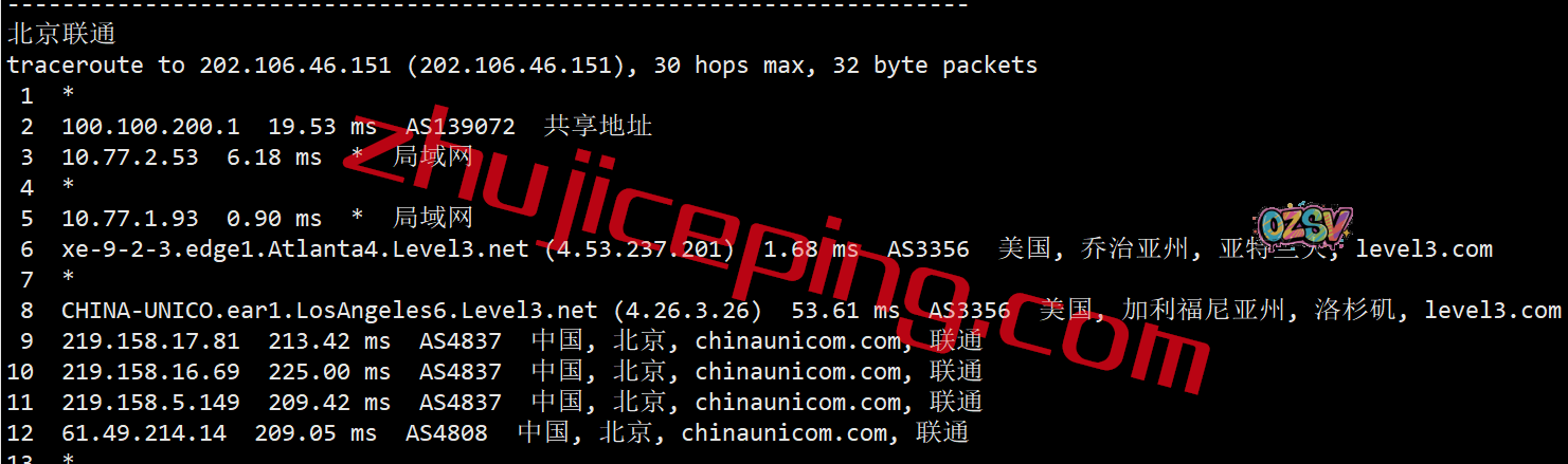 回程,到国内联通:走level3到洛杉矶或者圣何塞后转联通节点后接AS4837回国
