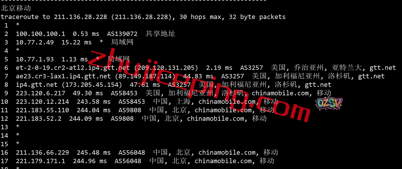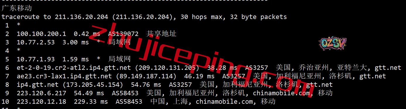 北京/广州方向:走GTT到洛杉矶,转移动洛杉矶节点回国