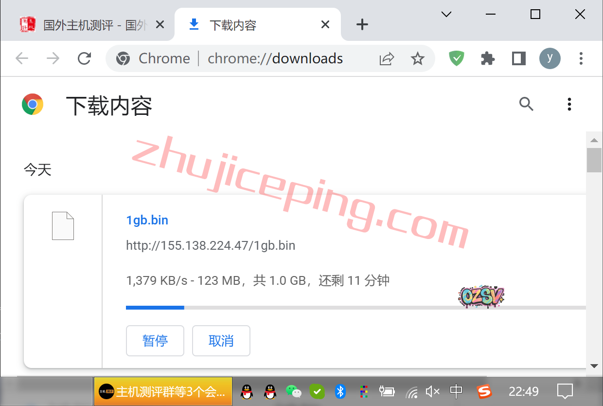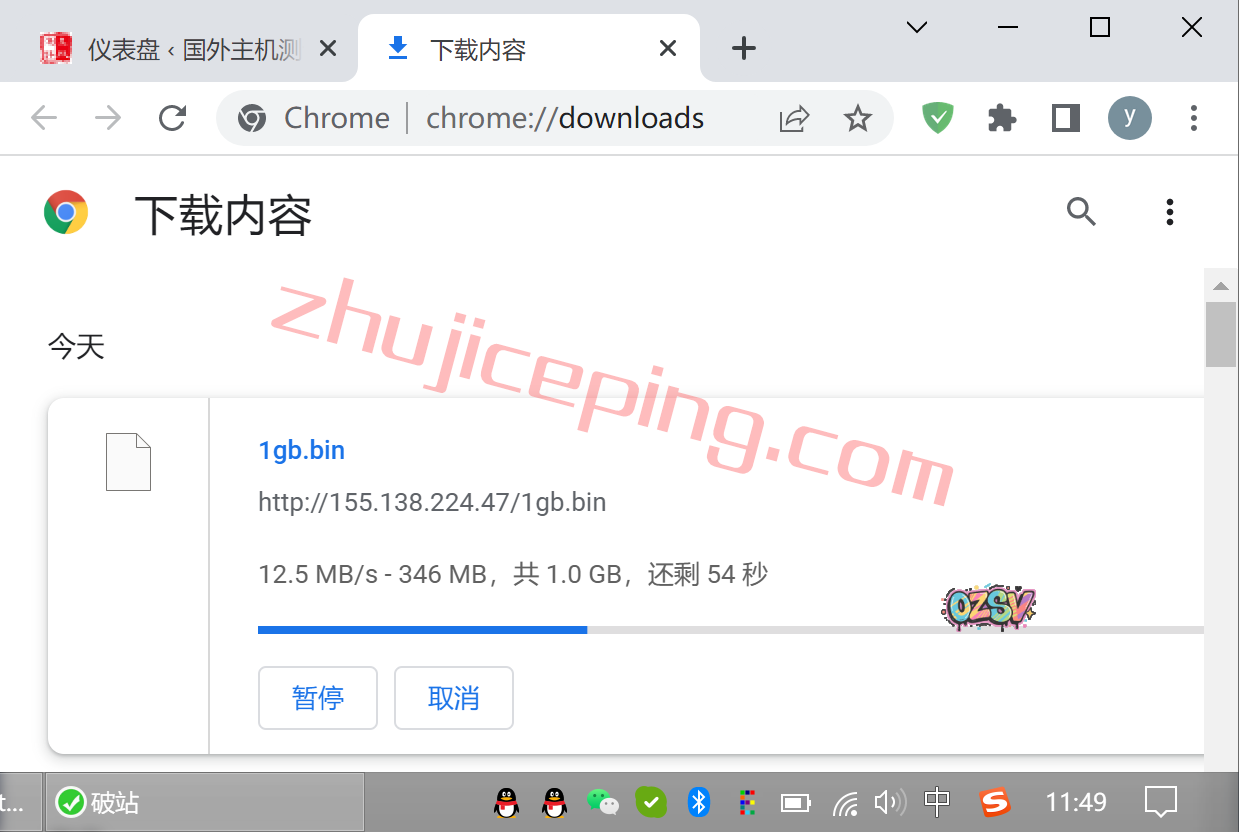 存放在测试小鸡上面的文件,广州电信直接用浏览器下载,看看速度: