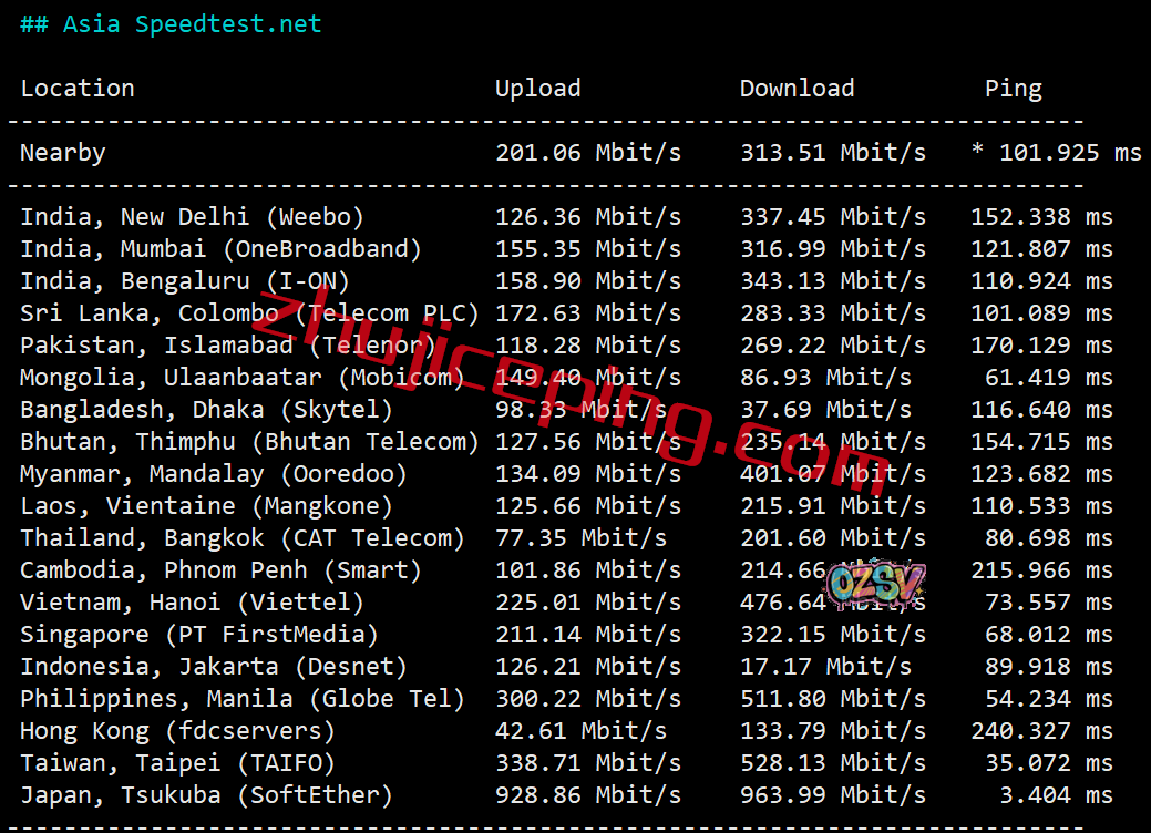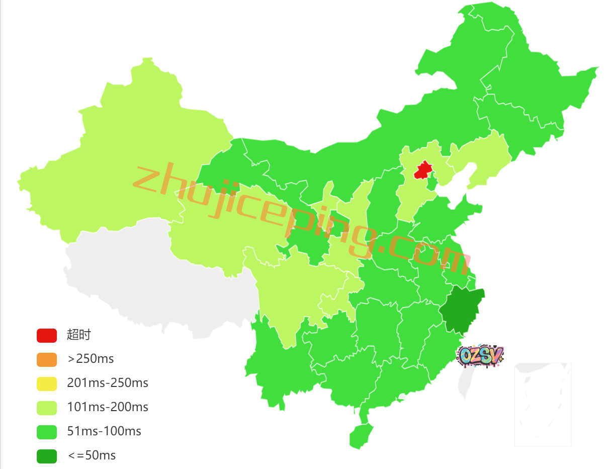 在看看亚洲区域内不包括中国大陆的节点的测试: