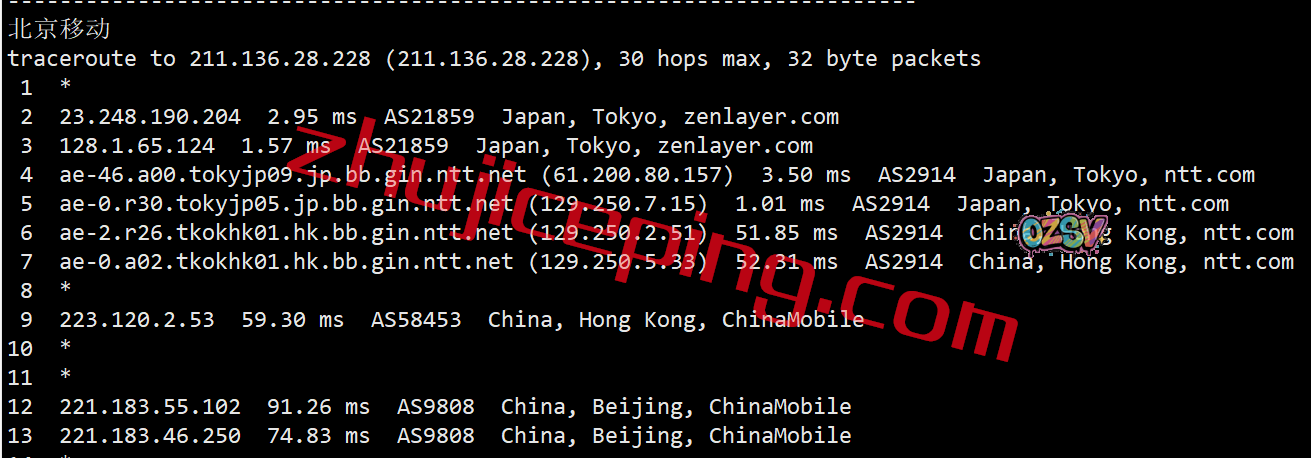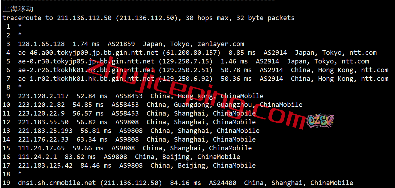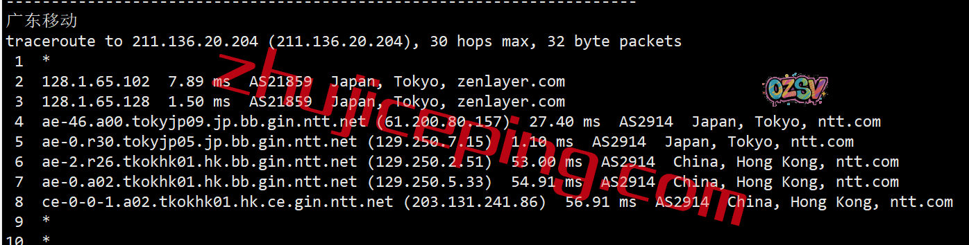 回程,到国内移动:走NTT到达香港之后转移动香港节点回来