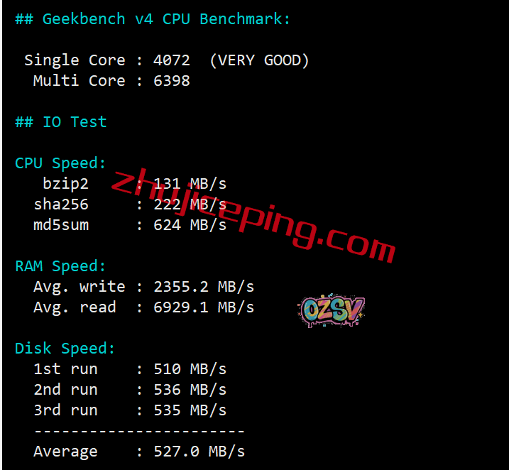 不管是硬盘I/O、内存读写、硬盘I/O,又或者综合跑分,都不错;