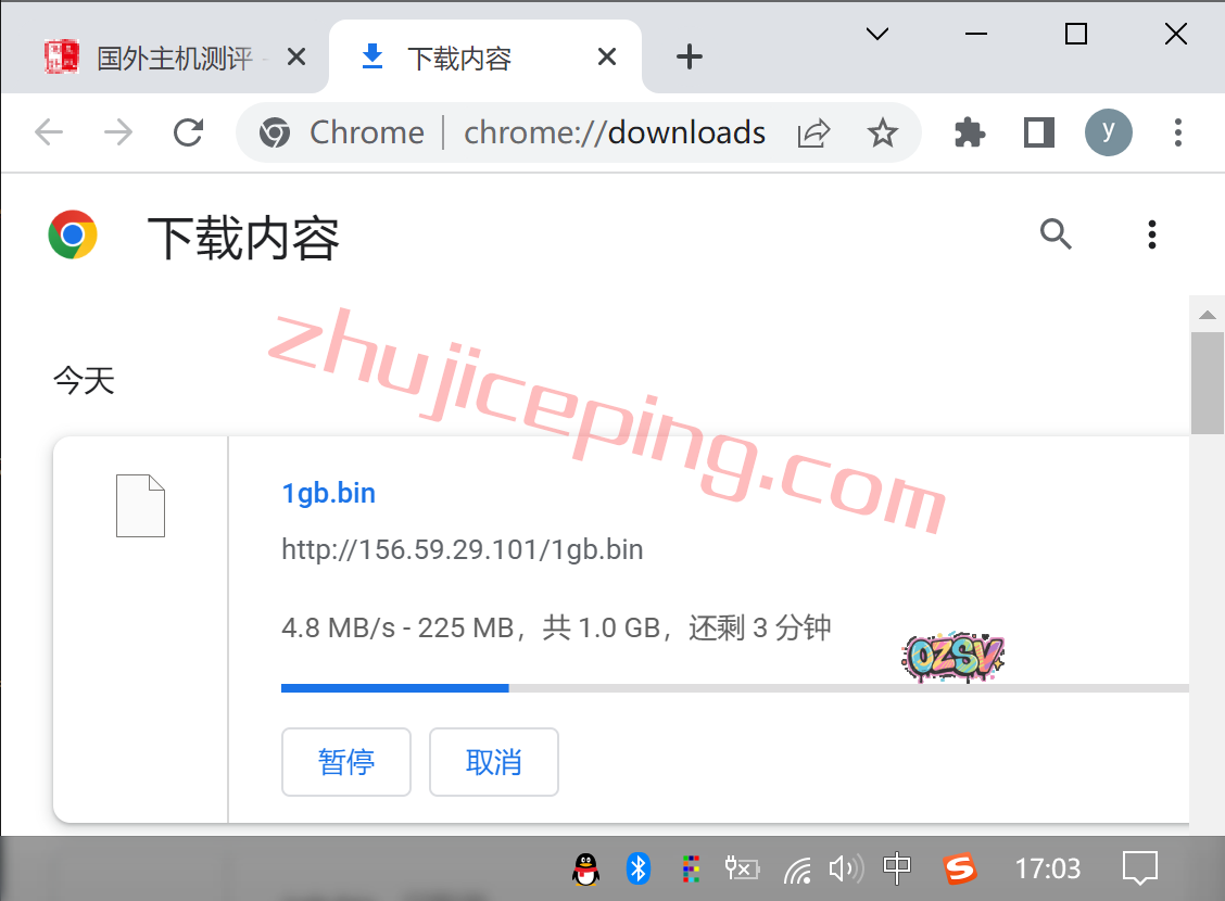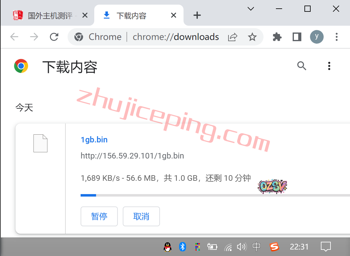 存放在测试小鸡上面的文件,广州电信直接用Chrome下载,看看速度吧: