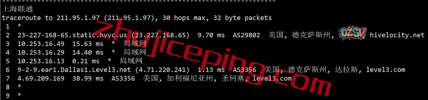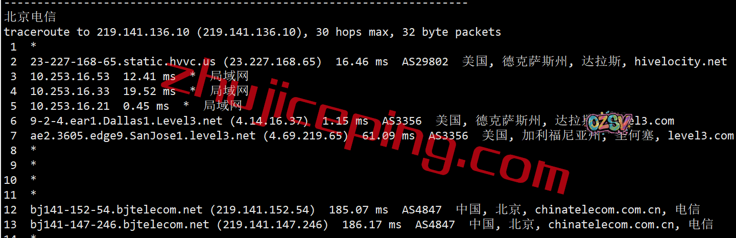 北京方向:走level3从圣何塞出口回国内;回上海和广州方向的路由屏蔽看不到