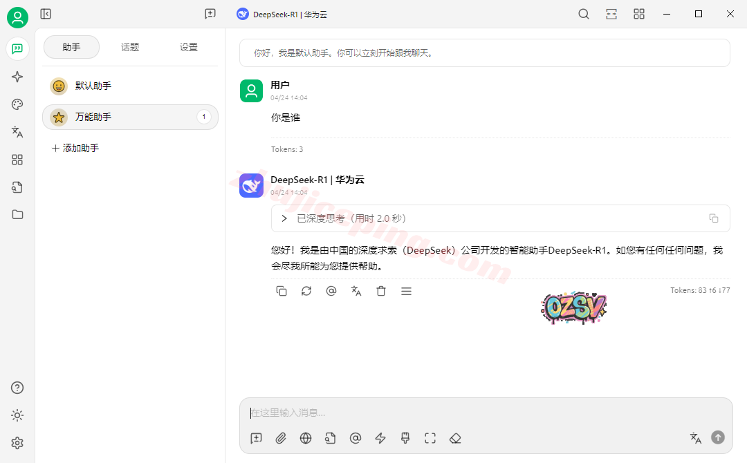 3、创建助手→选择部署的DeepSeek模型→开启智能服务