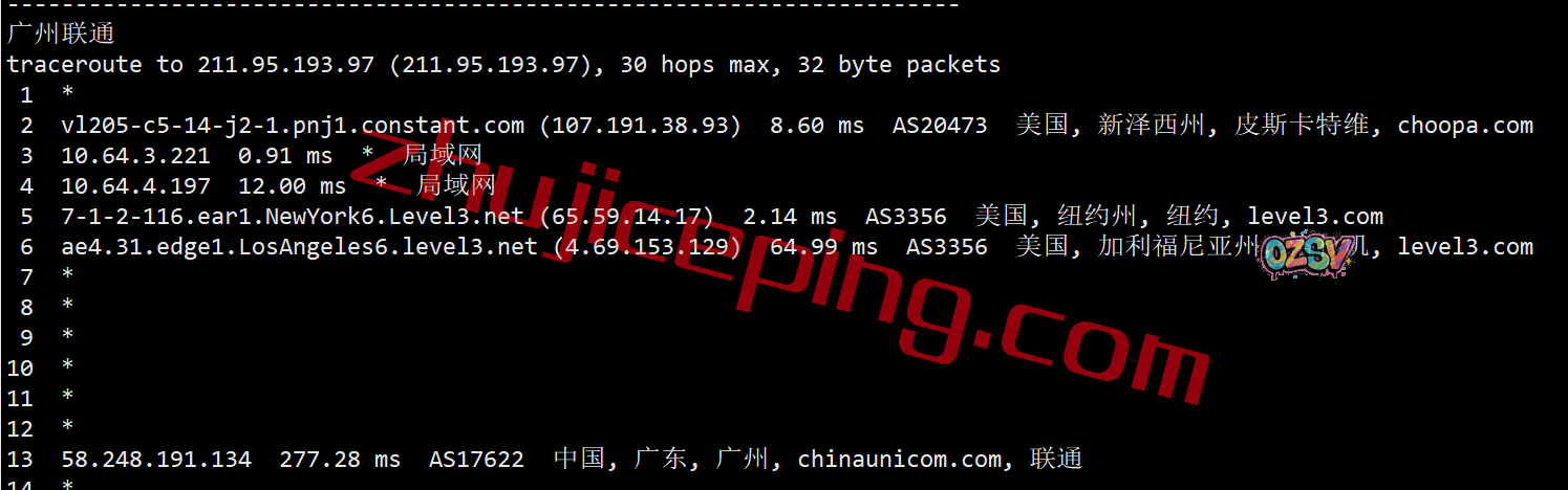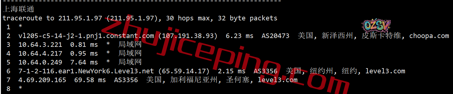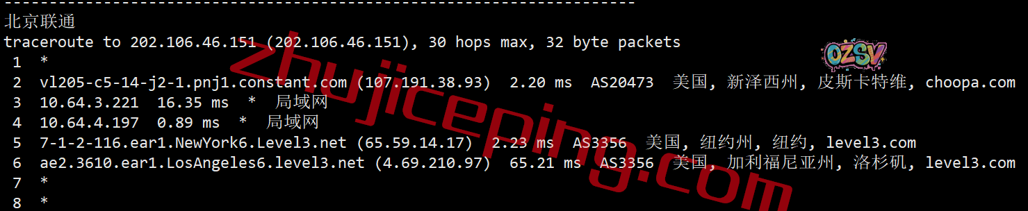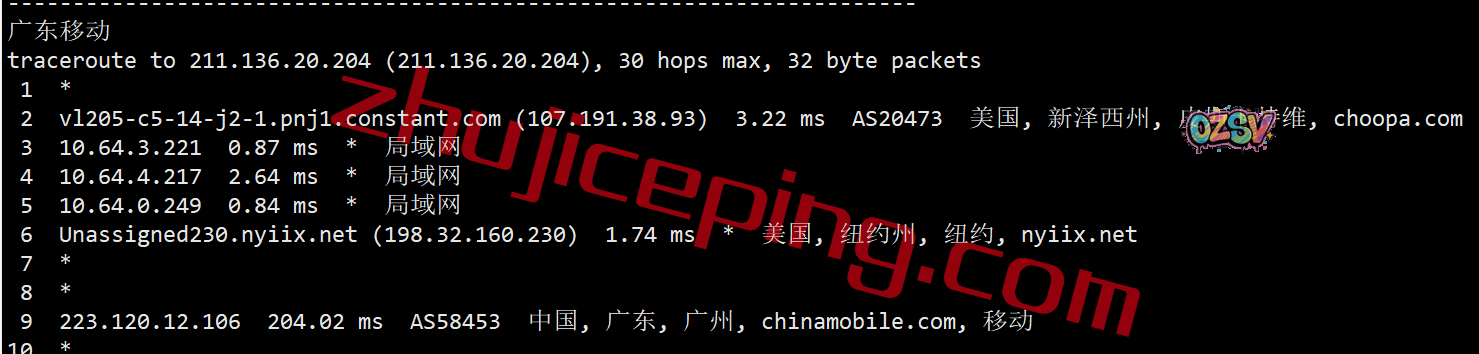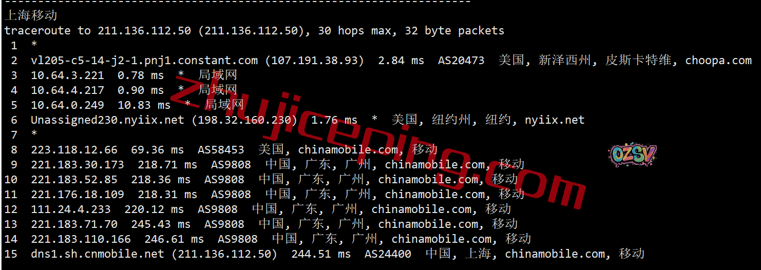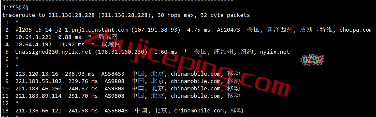 回程,到国内移动:走的是nyiix(也就是纽约国际互联网数据交换中心)出来直连国内