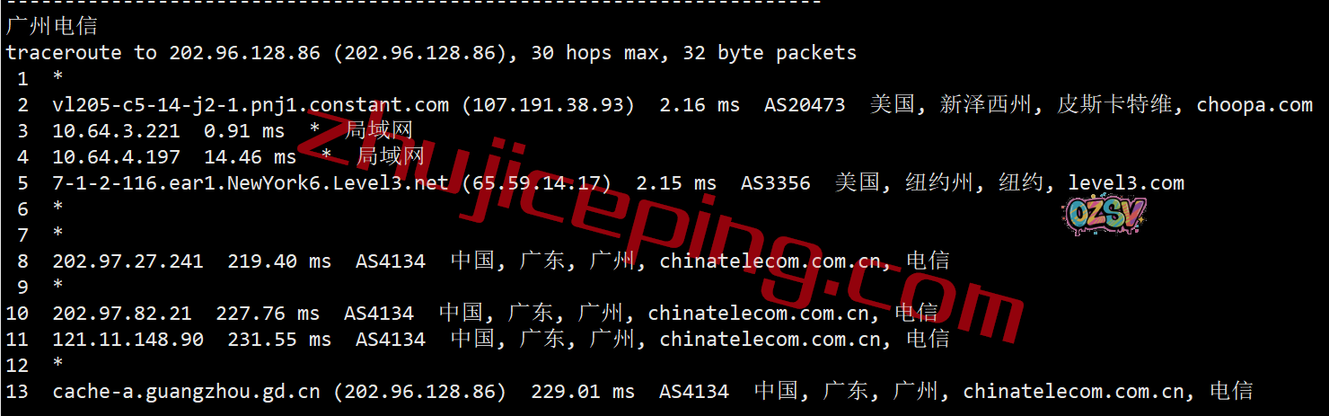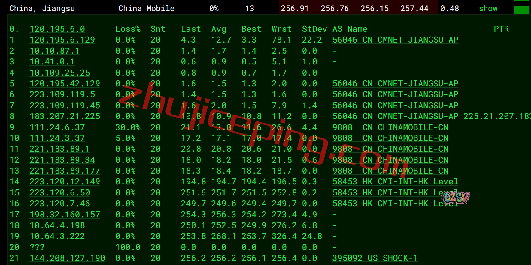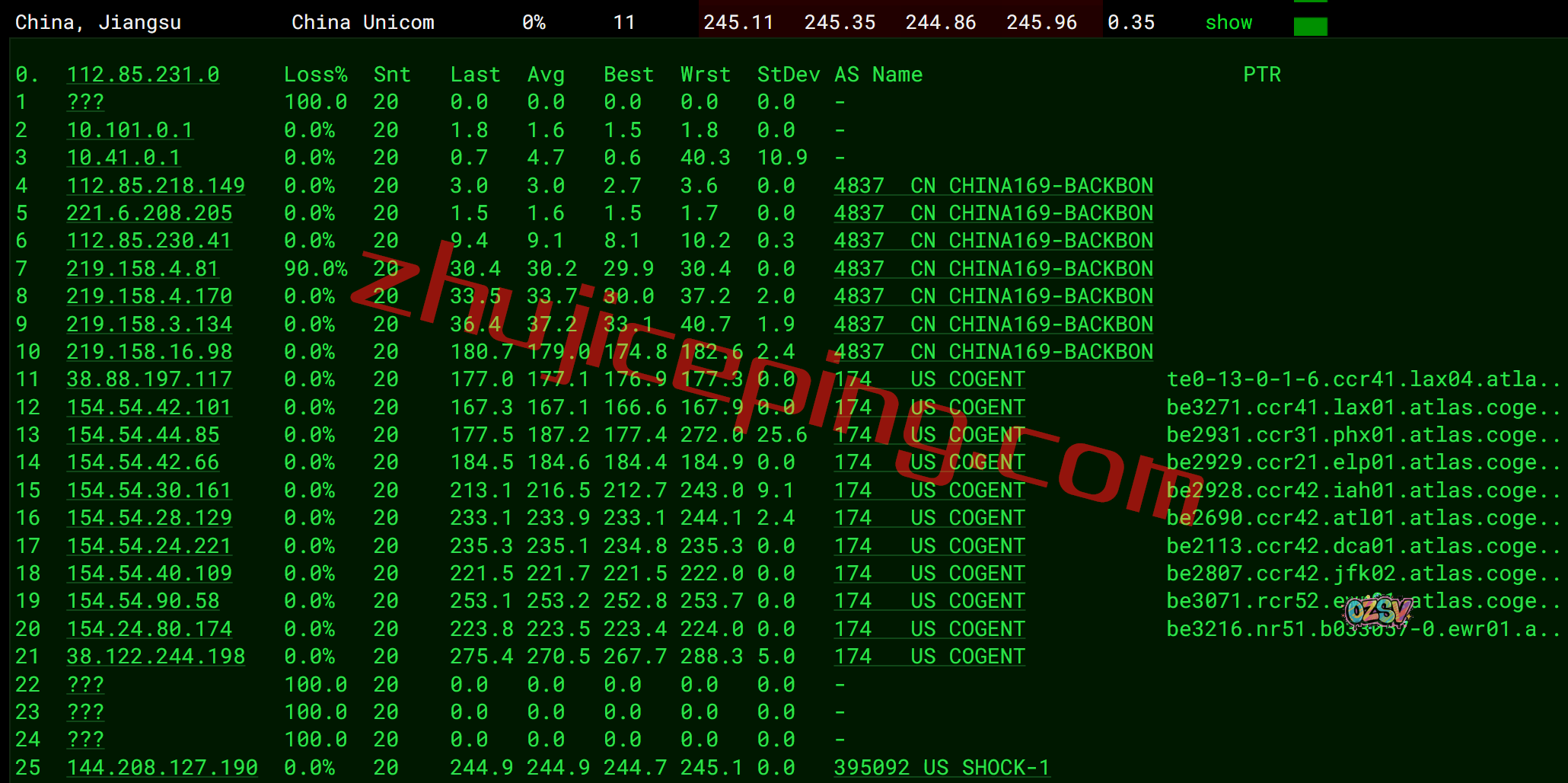回程,到国内移动:走的是nyiix(也就是纽约国际互联网数据交换中心)出来直连国内