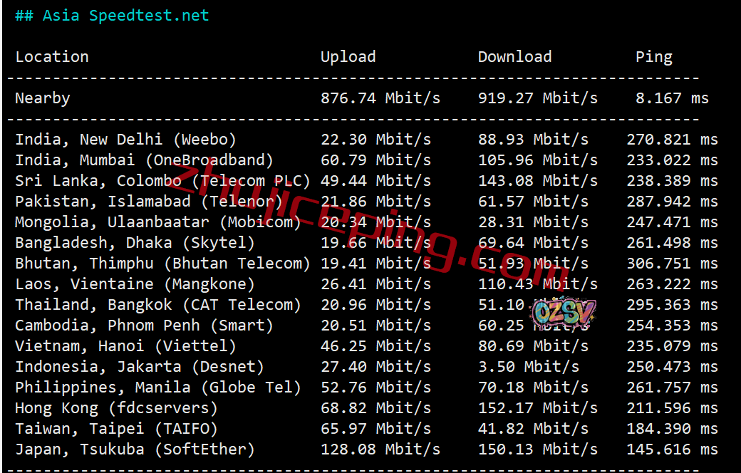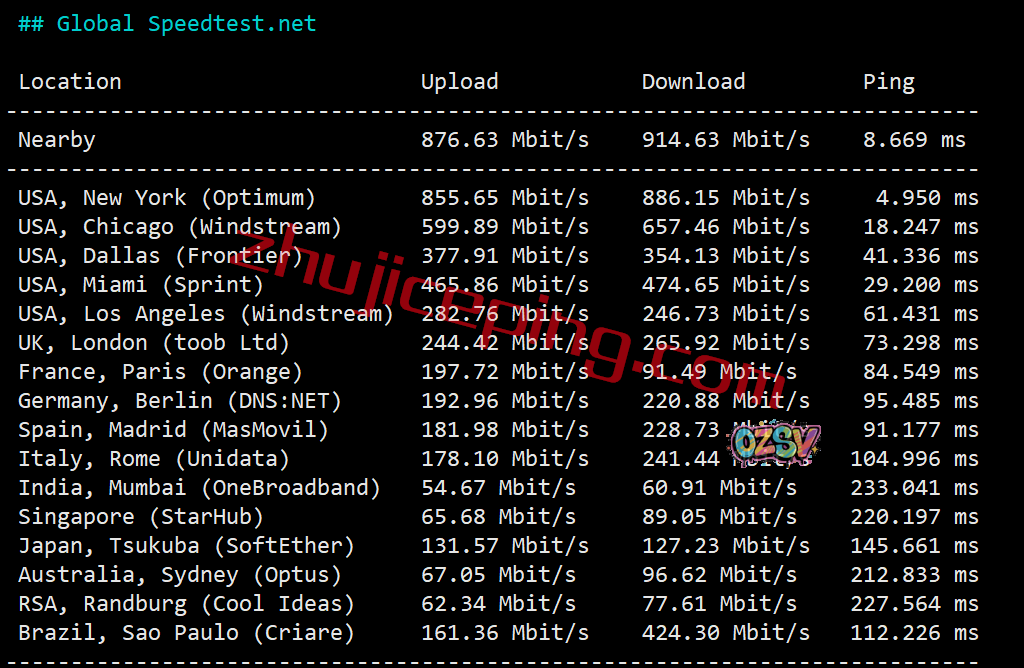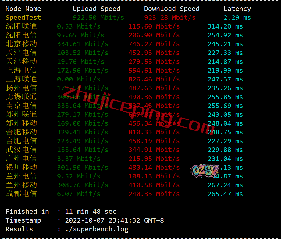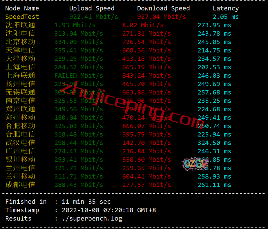 我们用speedtest.net在国内的三网节点跑一下上下行网络,看看可以达到多少吧,大致数据如下: