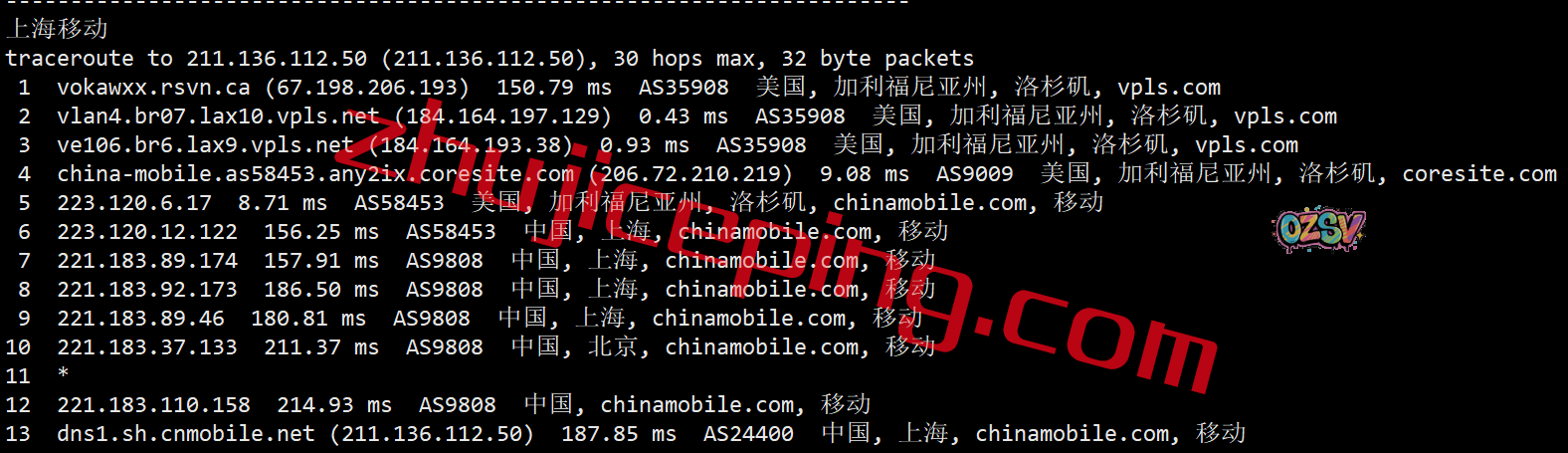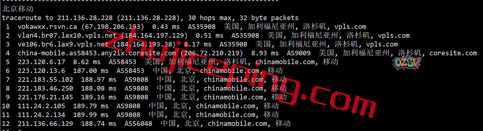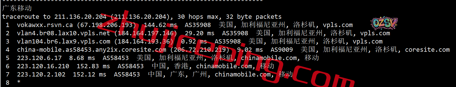 移动去程,移动骨干网直连移动圣何塞然后转pccw进入机房: