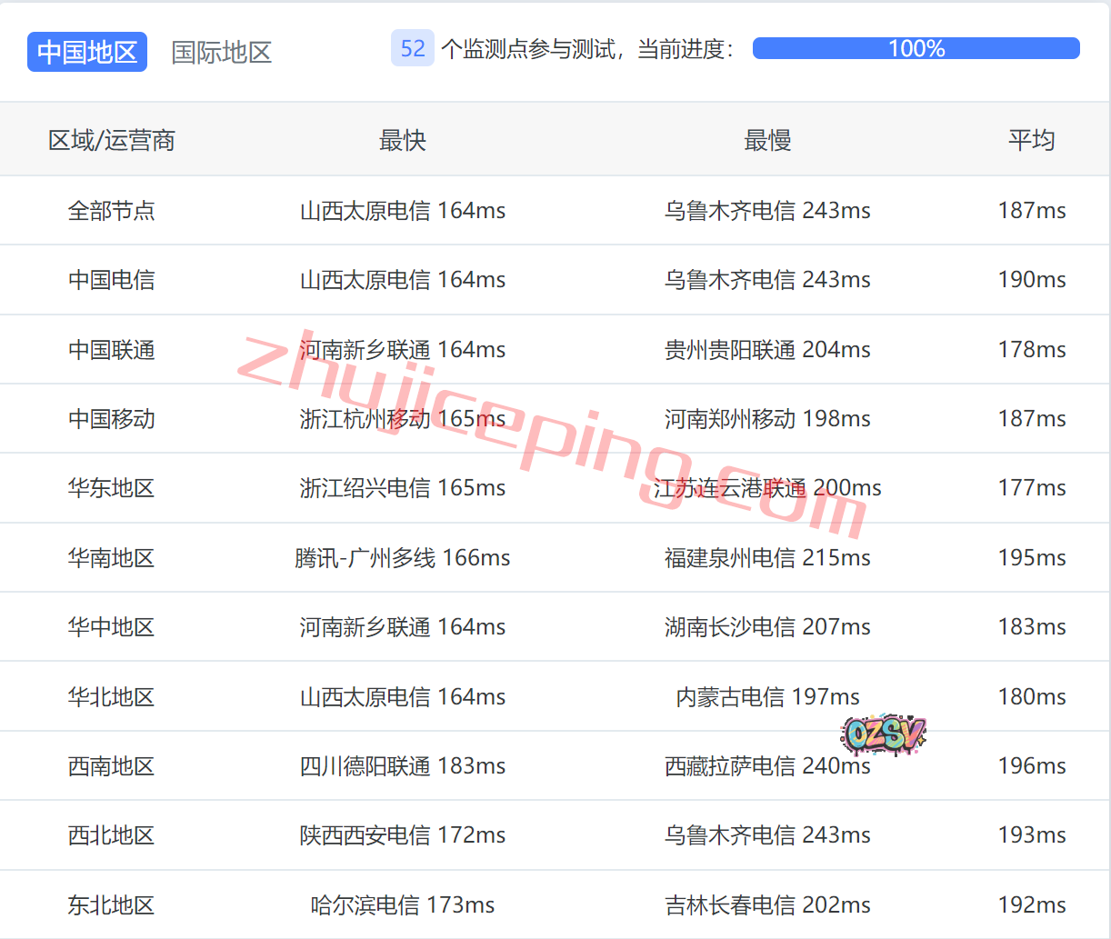 再看看全球的,美国、欧洲、非洲、亚洲部分节点的测试数据: