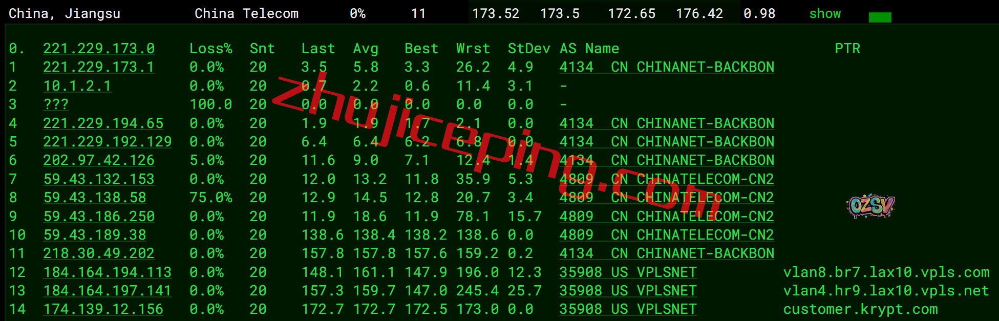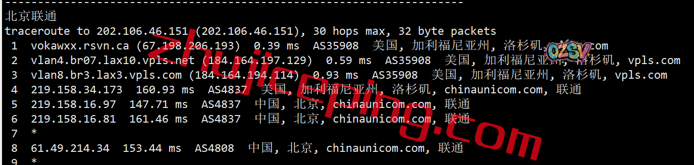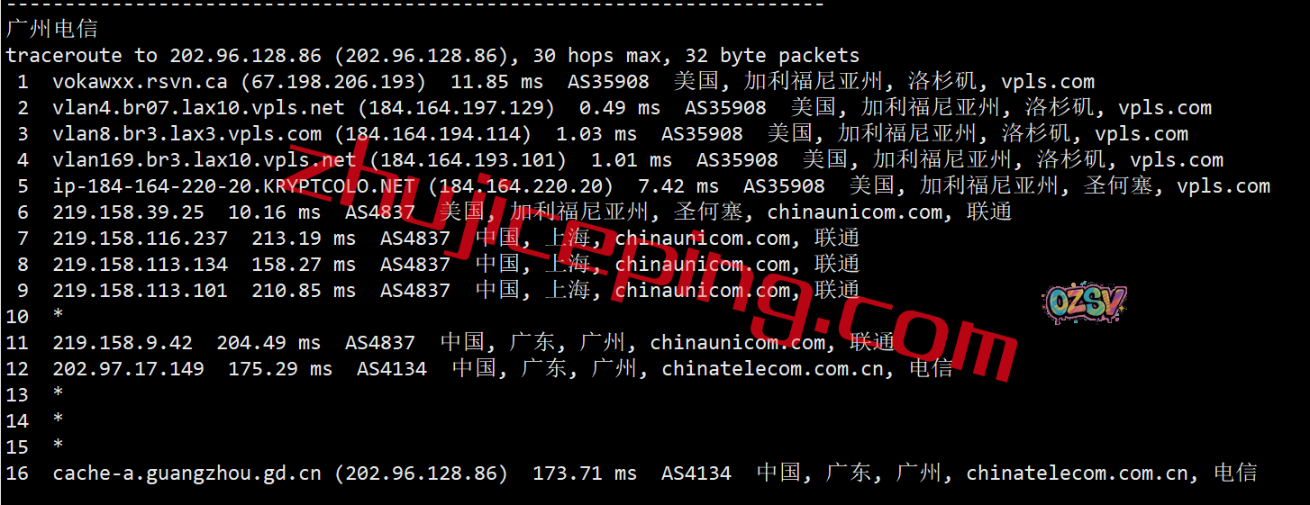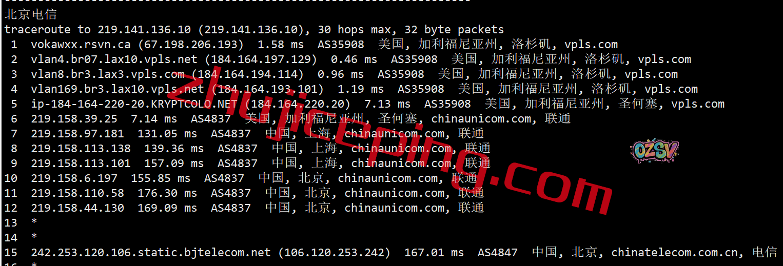 回程,到国内电信:从圣何塞联通节点直连回国,没有走CN2,可能被打了?