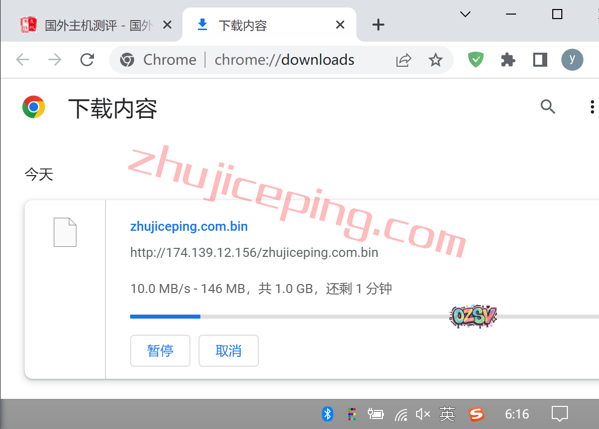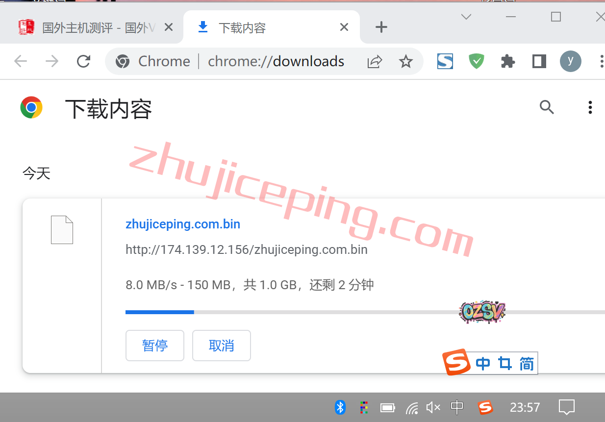 存放在测试小鸡上面的文件,广州电信,直接用Chrome下载,看看速度: