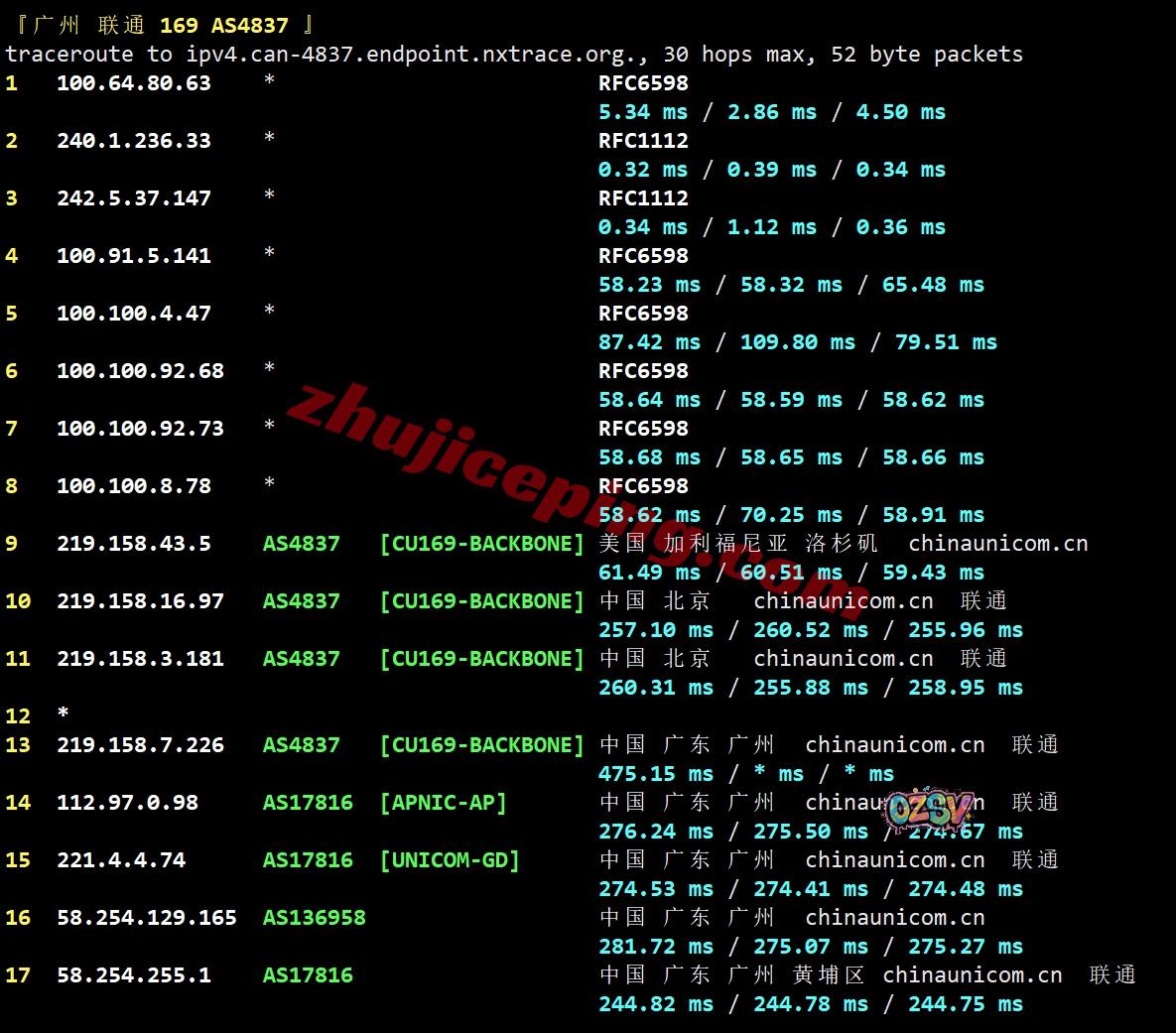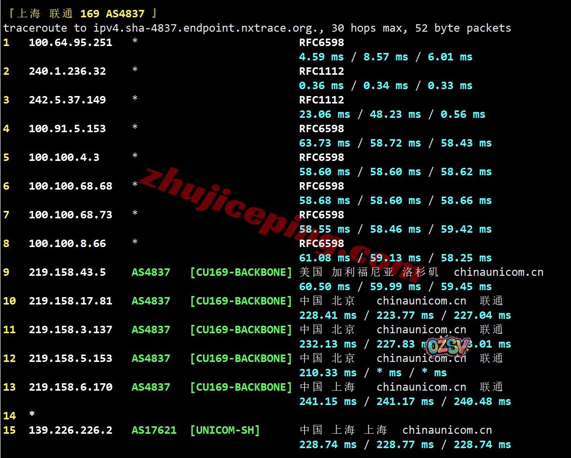 联通去程:直连联通美国洛杉矶节点,然后部分看不到,看到的就已经到了俄亥俄州