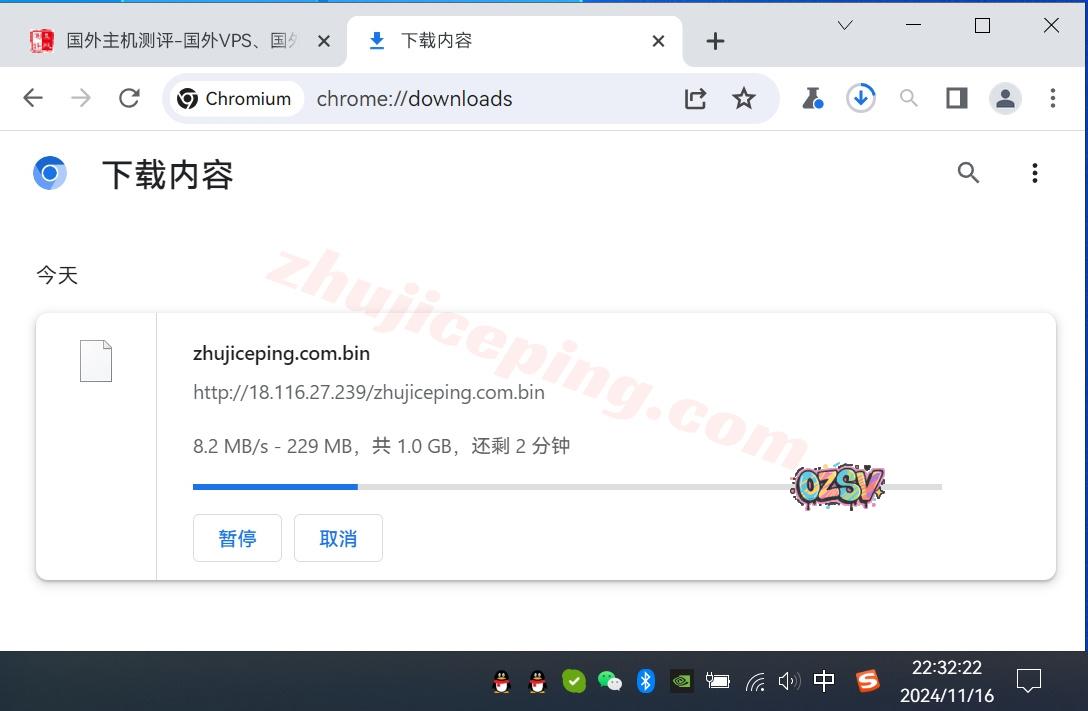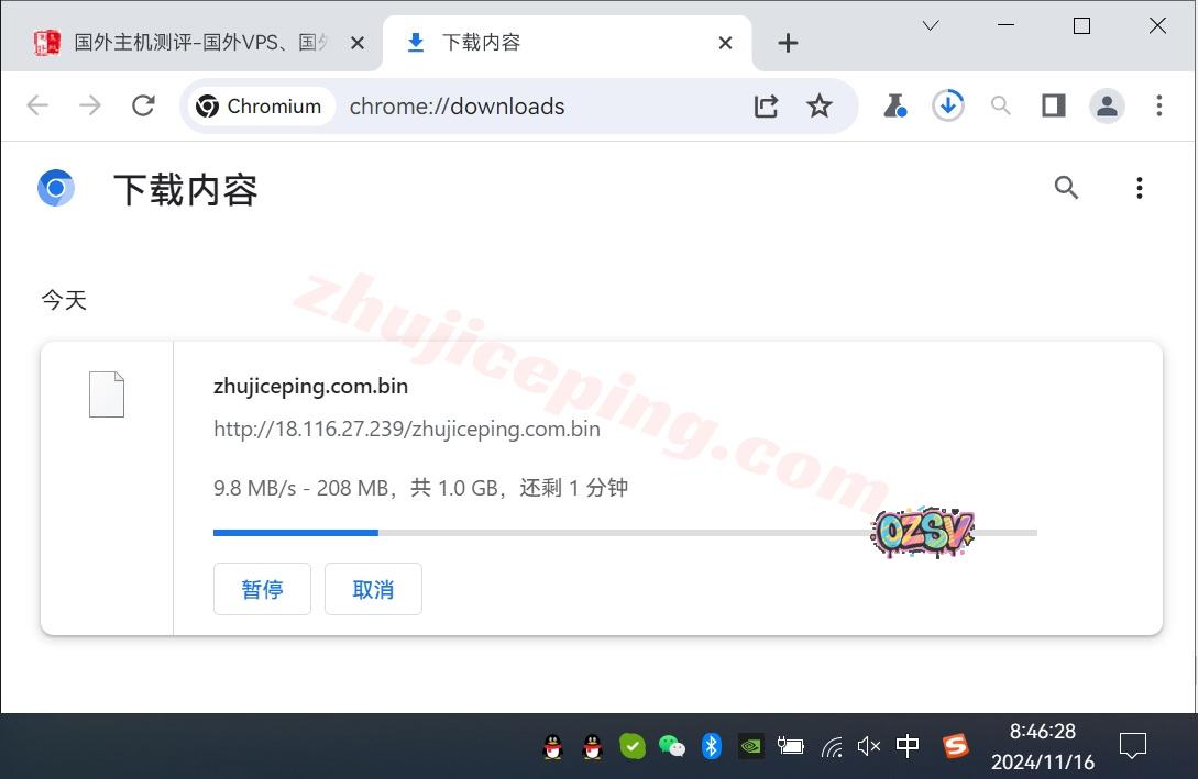 存放在测试测试云服务器上的文件,广州联通家宽直接Chrome下载该文件,大致的下载速度如下所示: