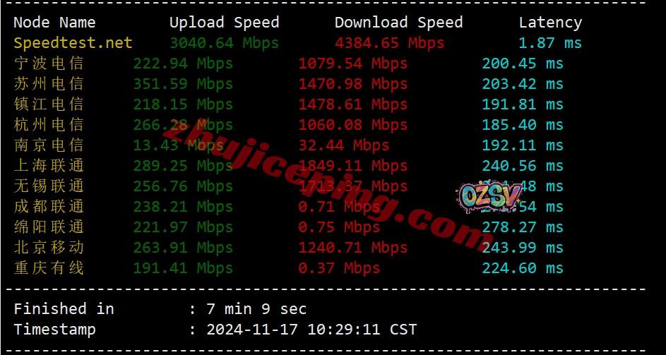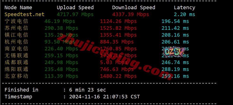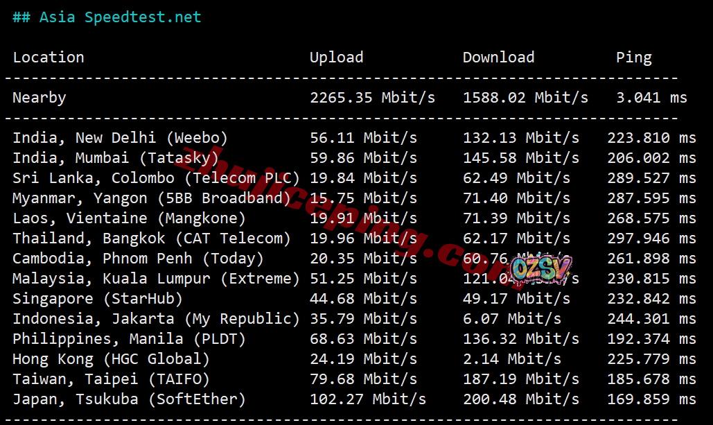 speedtest的部分亚洲节点的带宽上下行测试数据: