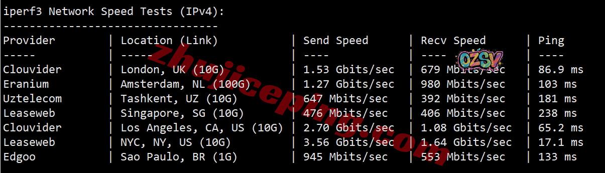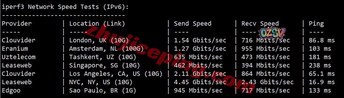 依旧还是iperf3测试,这次是IPv6环境下的测试数据:
