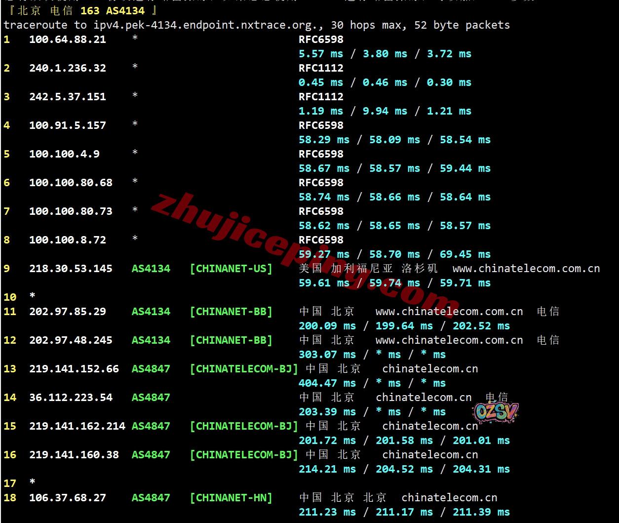 电信去程:直连电信美国加州帕洛阿尔托,部分路由看不到,然后看到的已经到了俄亥俄州