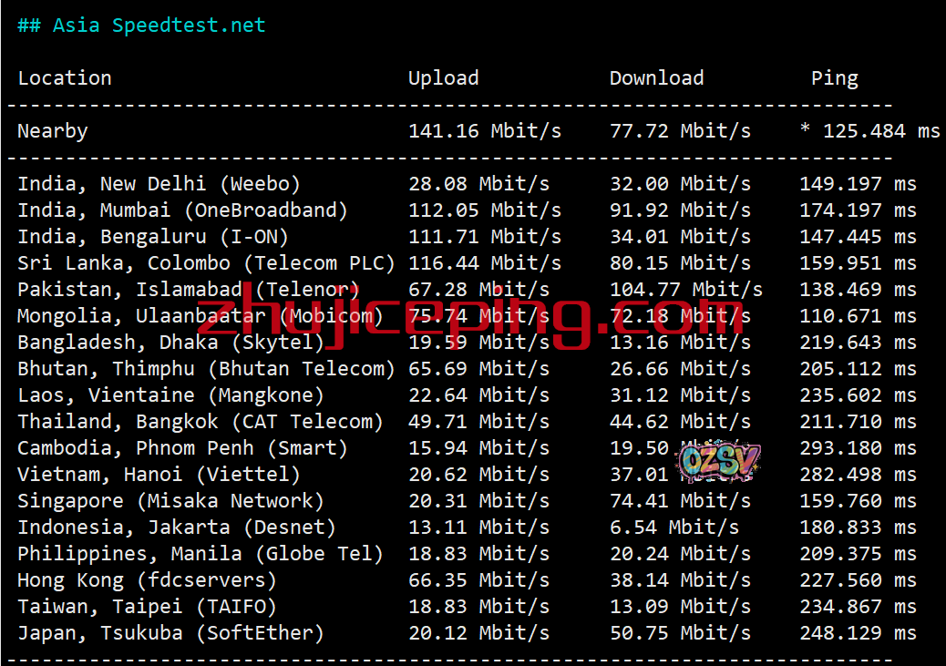 专门来测试下亚洲区域内的多个节点的效果,这里不包括中国,前面已经测试过了: