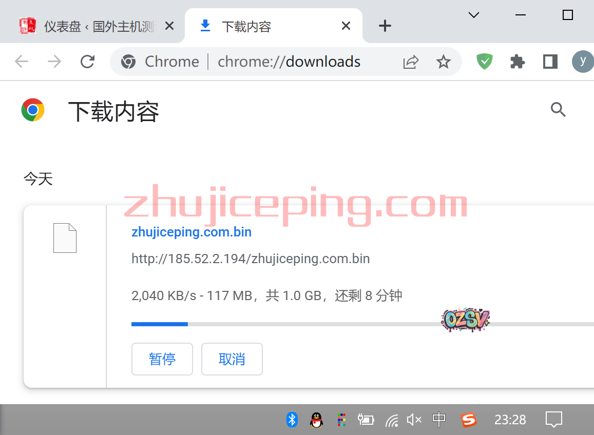 存放在测试小鸡上面的文件,广州电信直接浏览器下载,看看速度: