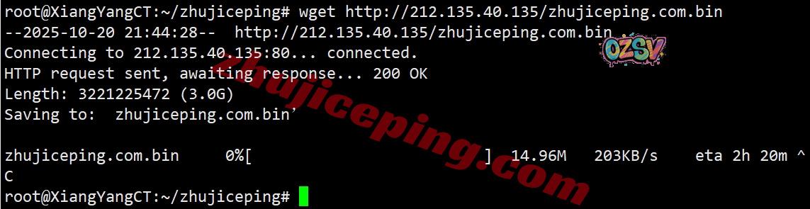 晚高峰,在湖北襄阳电信的机器上下载存放在测试机上的文件,大致的下载速度如下: