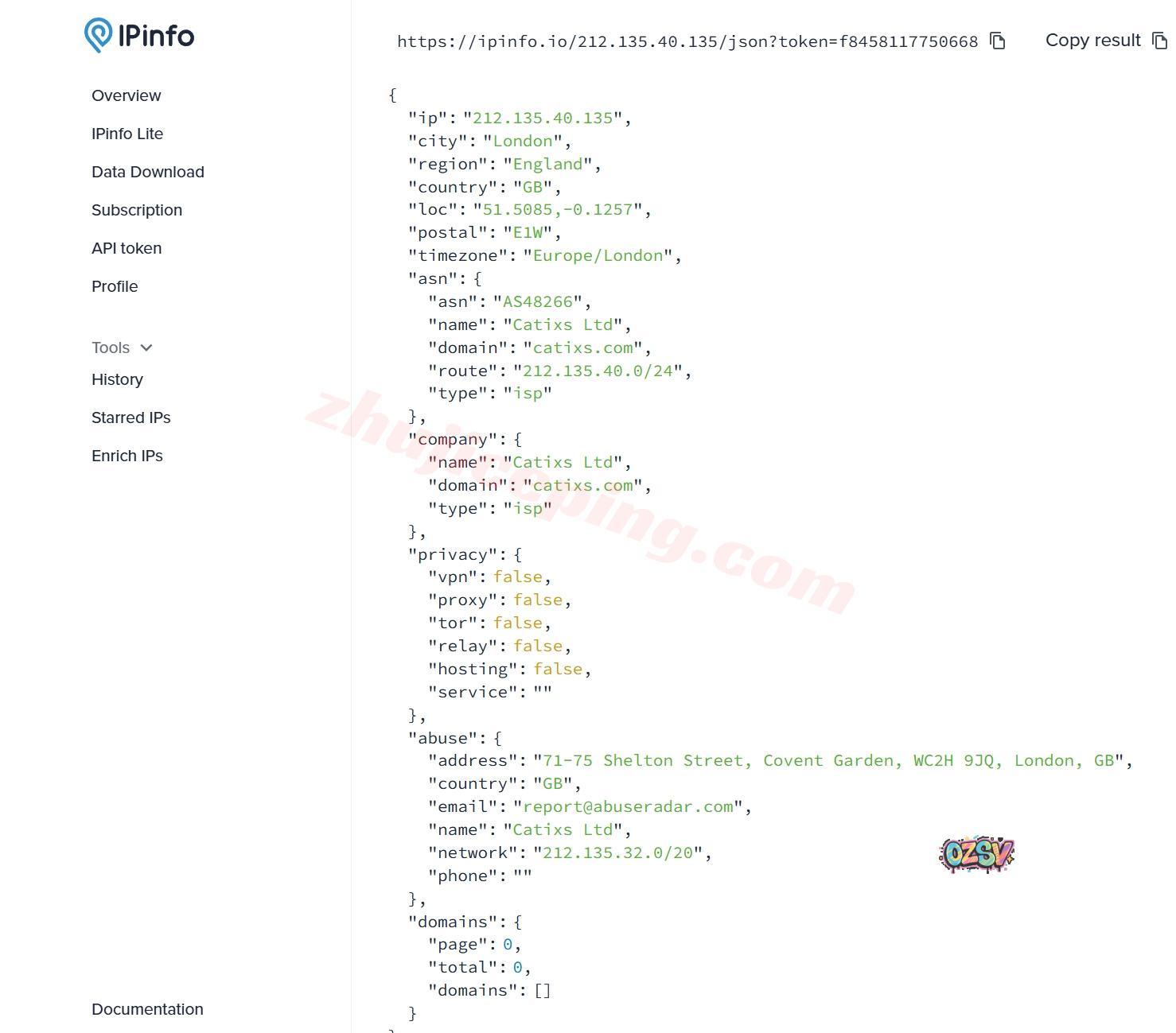 ipinfo的数据库显示测试IP为双ISP住宅属性: