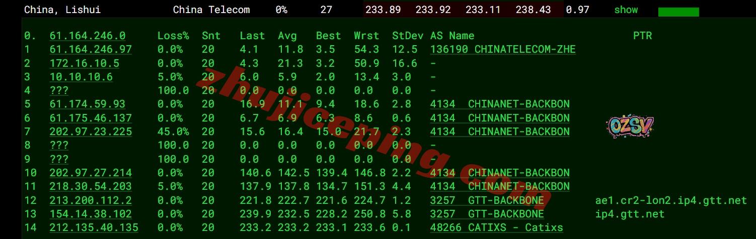电信去程:直连电信美国圣何塞节点然后接GTT去英国伦敦