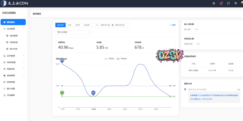 支持高级缓存、分层预热、动态加速、HTTPS加速、HTTP2加速、页面压缩、支持IPV6配置、智能压缩节省流量、
