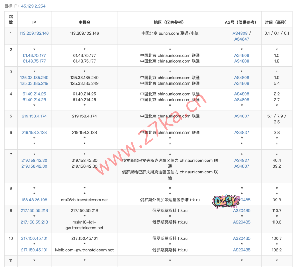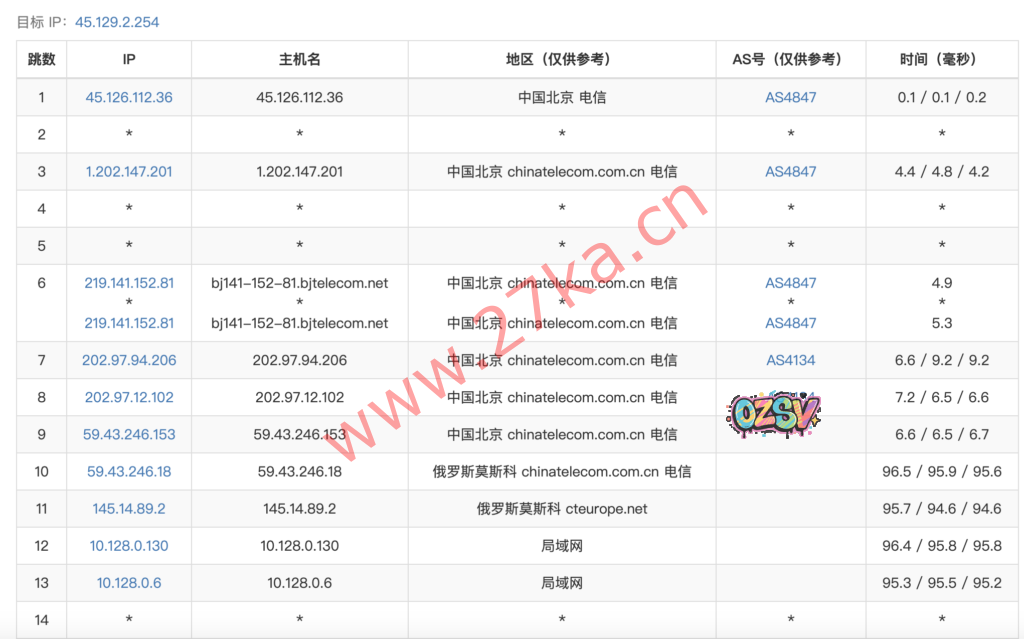 10  202.97.97.26  288.63 ms  AS4134  China, Guizhou, Guiyang, ChinaTelecom