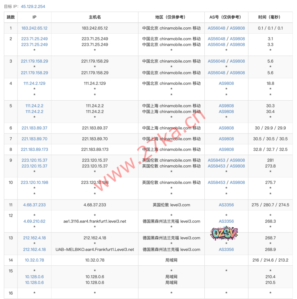 9  202.97.91.129  252.20 ms  AS4134  China, Guangdong, Guangzhou, ChinaTelecom